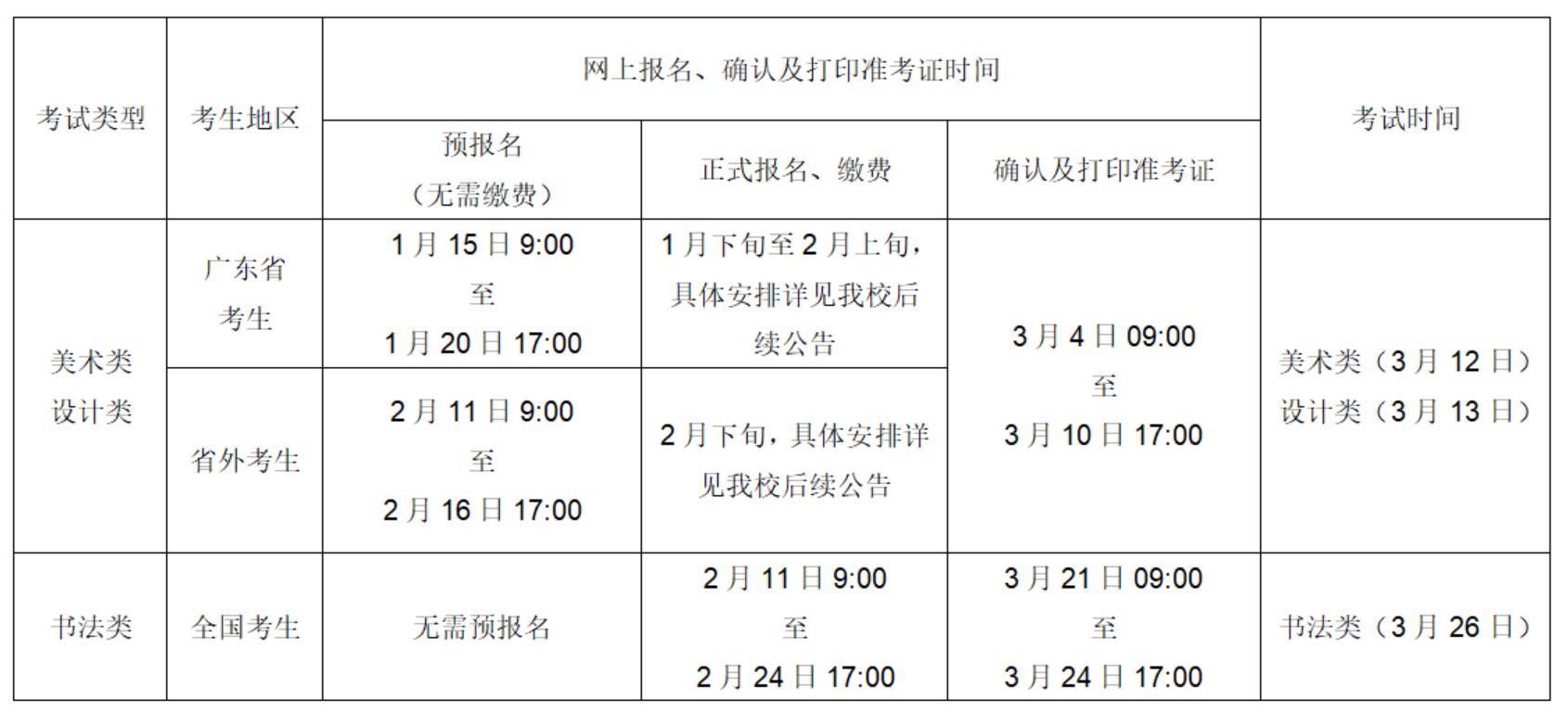 面向广东省考生“美术类”“设计类”专业校考正式报名时间是1月27日09:00至2月16日17:00,请已通过初选的考生按时报名及缴费,逾期不再受理,详见《2025新澳门2025免费原料网2022年普通本科面向广东省考生校考正式报名安排》(点击浏览)。
