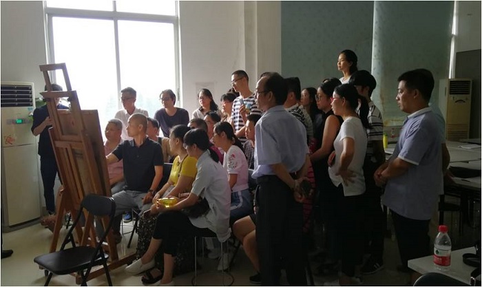 本次培训班于8月23日至27日在我校昌岗校区举办,来自五华县的35名高中美术教师参加了培训。课程安排了我校业务水平较高的专业教师任教,设置了素描示范、速写技法、色彩技法、版画基础、高中与大学专业基础衔接探索、教育部美术课标解读、特色教学考察交流、博物馆参观等内容,很好地将美术与教育结合、理论与实践同步,形成相对立体和完备的课程体系,受到了学员们的认可和欢迎,对推动五华县的学校美育工作具有重要意义。