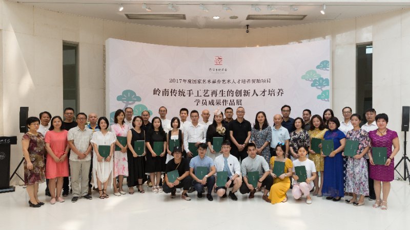 国家艺术基金《岭南传统手工艺再生的创新人才培养》项目从2017年9月立项以来,经过项目组一年的筹划、准备和实施,最终展出30位学员30个系列53件作品。作品覆盖岭南传统手工艺具有代表性的“三雕一彩一绣”,以及潮州嵌瓷、肇庆端砚、佛山陶艺、广西瑶绣等9个手工艺门类。系列作品最大的亮点与特色是将工业设计与传统手工艺相结合,将传统手工艺与现代产品设计开发的思维、理念和系统相结合,将传统手工艺与互联网创新创业相结合,从生活、使用、销售的角度另辟蹊径,实现工艺品、产品、商品三个维度的升级,为岭南传统手工技艺的传承与发展、传统手工艺人的生存与繁荣做出了具有探索性的创新实践。典礼结束后,全体嘉宾和学员参观了展览,并对项目的成果和展览给予了高度评价。