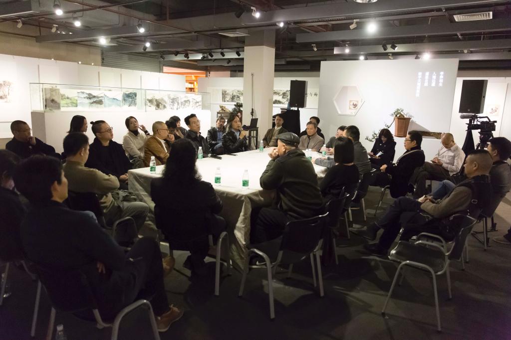 展览开幕仪式后,还现场举行了“蔡拥华创作心得分享会”,围绕蔡拥华的艺术风格、创作历程等内容展开研讨。