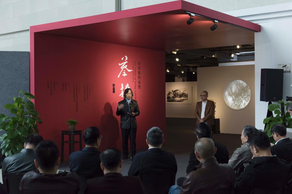 开幕仪式上,王永、范勃、广新力、温朝晖、梁江、王璜生、谢昌晶先后致辞,对展览的举办表示热烈祝贺,对蔡拥华在从事管理工作、教书育人、艺术创作等方面的优异表现和丰硕成果表示赞赏,对其孜孜不倦的艺术追求、在艺术创作中的融合创新表示敬佩。蔡拥华致答谢辞,表达了自己在艺术创作理念上的探索与体会,对各位领导、同仁、相关单位及策展团队的支持表示感谢,并向荔城街道赠送作品及向区图书馆捐赠书籍。王跃生宣布展览开幕。