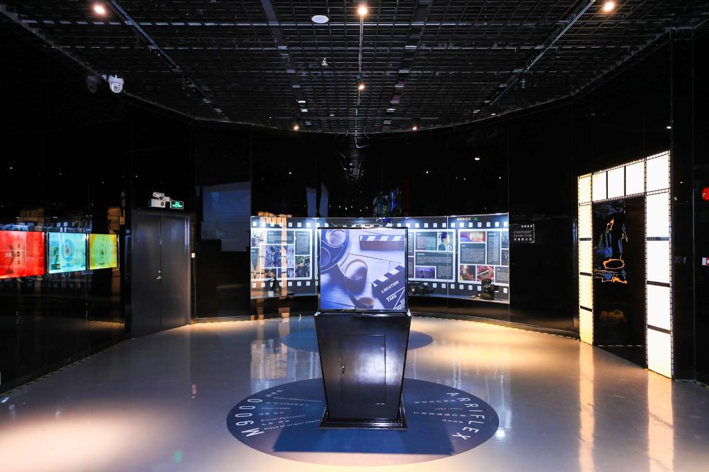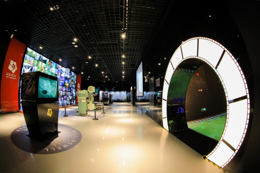 研究展示中心由时光隧道、纪录片节主题区、设备展示区、场景模拟区、虚拟博物馆等主题展区和1个多功能放映厅构成,整个场馆的视觉设计以黑白灰为主色调,延续了纪录片的严谨风格,凸显了纪录片的历史底蕴和其中蕴含的丰富文化内涵。在整体设计上充分调动了平面视觉、空间环境、声光电、数字媒体互动、三D墙绘等多种展示表现手法,全方位立体展示广州纪录片研究中心的特色。