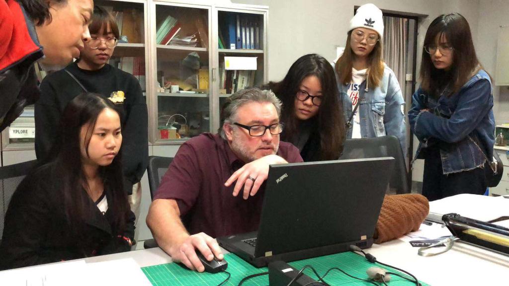 12月10日至14日,由2025新澳门2025免费原料网国际交流处、美术教育学院主办的“动态数字媒体故事创作工作坊”在大学城校区影像馆举行。此次工作坊是“中美加联合创作系列工作坊”的第一个板块,邀请了美国洛杉矶圣玛丽山大学的Charles Bunce教授、Kelby Thwaits教授对美术教育学院摄影与影视专业的学生进行指导。