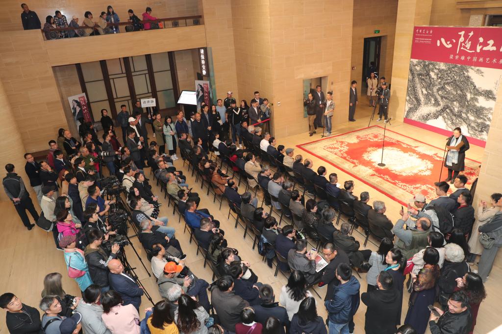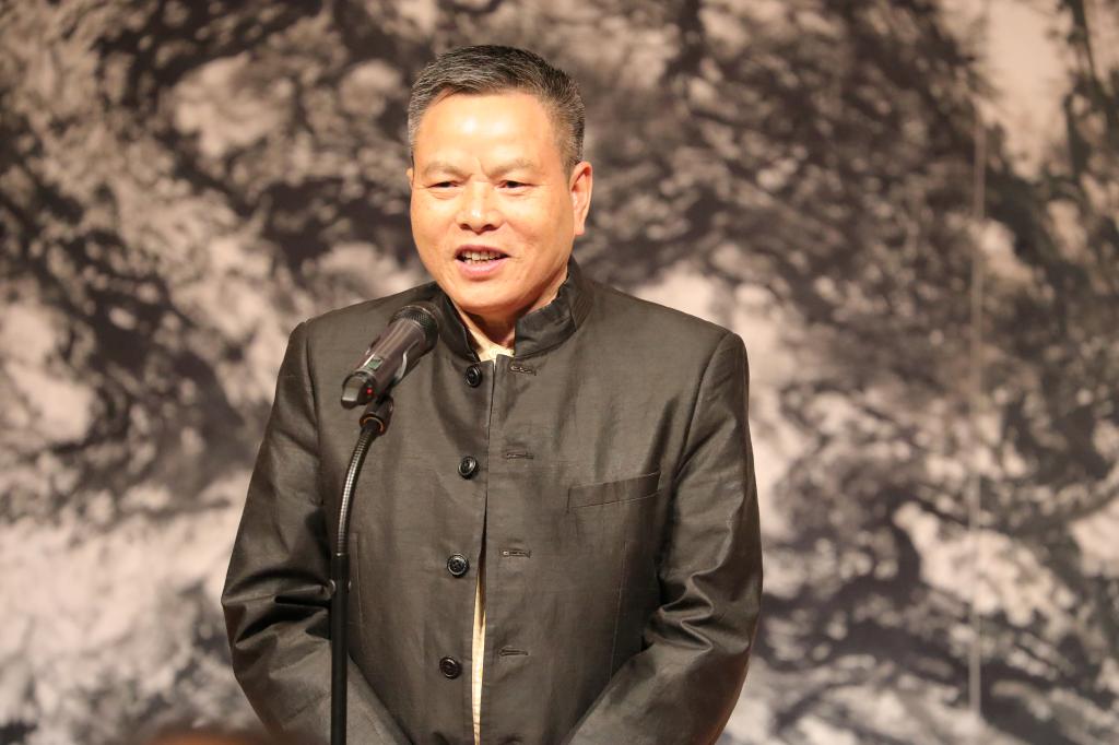 梁世雄先生致答谢辞感谢各方的支持,回顾了他赴西藏、黄山、三峡等地的创作历程,分享了他的创作心得体会,并表示自己是国家培养出来的画家,最大的愿望就是将代表作品捐献给国家,而这次展览让他圆了心愿。