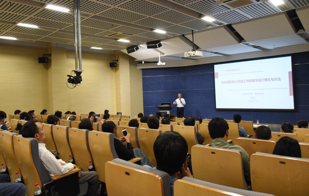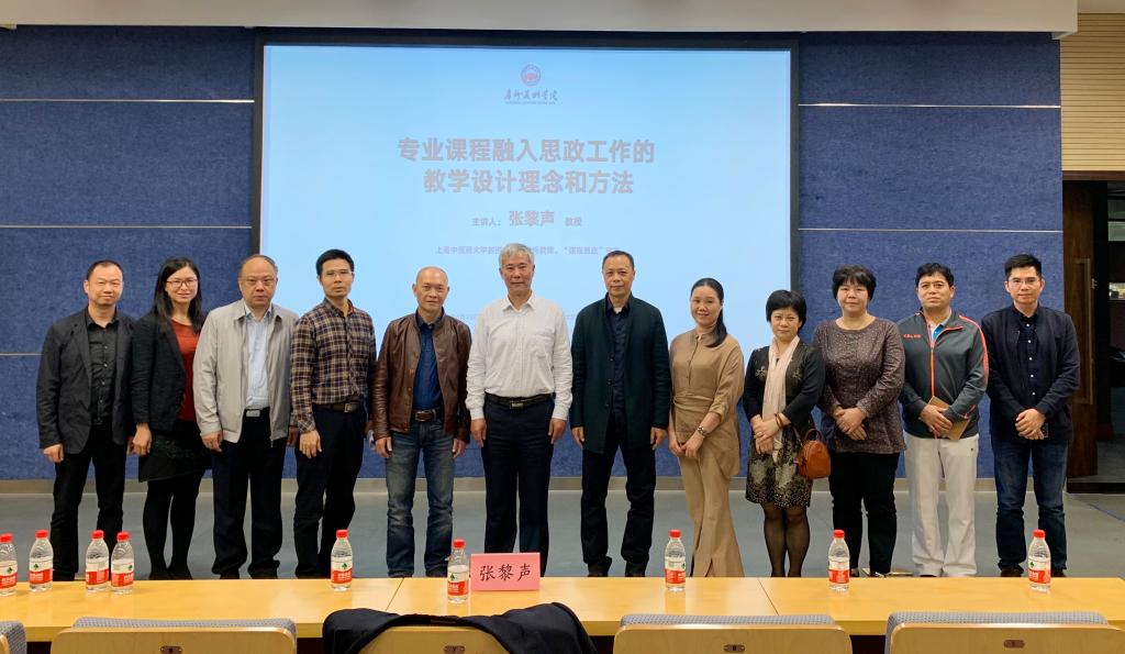 为深入贯彻落实习近平总书记在全国教育大会和学校思想政治理论课教师座谈会重要讲话精神,根据教育部和广东省关于加强师德师风建设、深化教师队伍建设等文件精神,推动我校教师自觉加强师德修养,把教书育人和自我修养结合起来,自觉做以德立身、以德立学、以德施教、以德育德的楷模,4月15日下午,我校邀请全国优秀教师、上海中医药大学张黎声教授来校作题为“专业课程融入思政工作的教学设计理念与方法”的专题报告。党委教师工作部、党委组织部、党委宣传部、人事处等学校有关职能部门负责人以及各教学单位党总支书记、专职副书记、教学副院长、教师代表和全体辅导员等聆听了报告。报告会由党委教师工作部副部长刁娥凤主持。