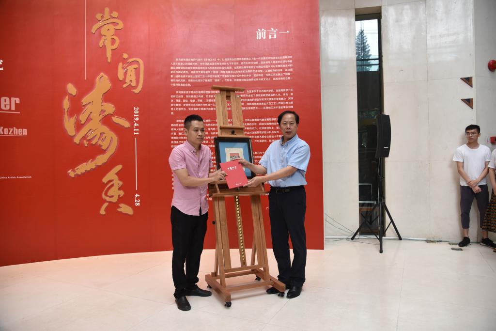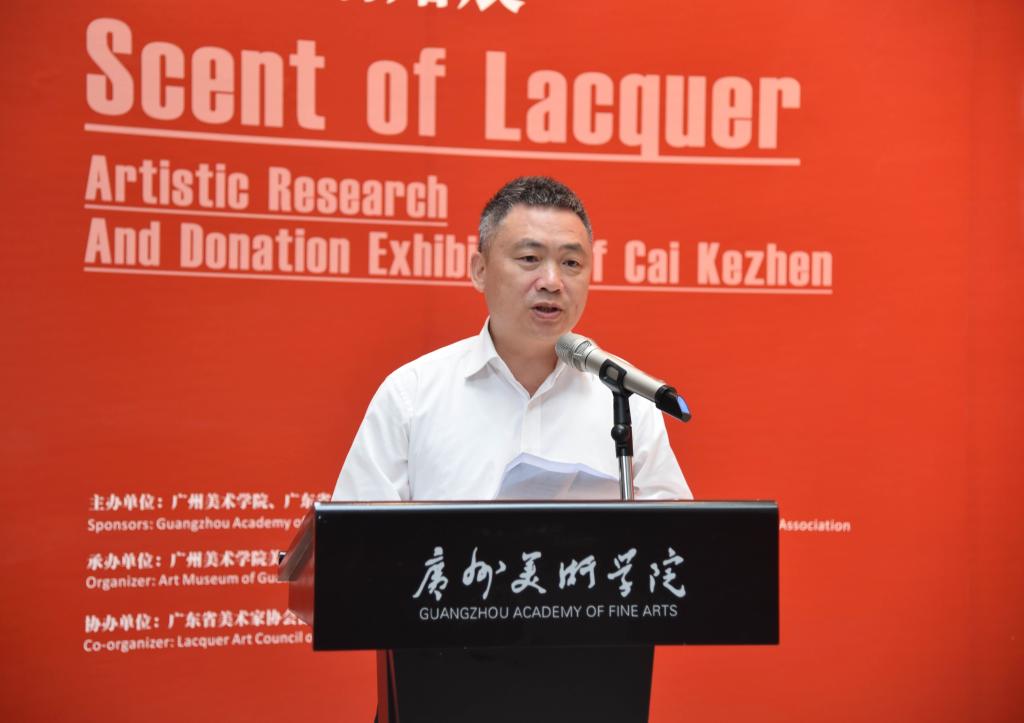 李劲堃表示,学校近年来高度重视对老艺术家们的创作实践、从艺经验及教育历程进行回顾、梳理与展示,蔡克振先生本次给学校捐赠其数十年来创作的代表性作品正是响应了学校的研究需求,为学校留下了宝贵的艺术财富,他为蔡克振先生、黄光先生的大义之举表示衷心感谢。他全面回顾了蔡克振作为一名艺术家、艺术教育工作者、漆艺领域的学术带头人的杰出履历,充分肯定了他为中国美术教育事业、中越文化艺术交流、漆画艺术建设发展等方面作出的重要贡献。并希望后辈从艺者能够通过欣赏蔡克振先生的作品以及艺术历程,领略和学习老一辈艺术家们的品德修养与工匠精神,重温新中国文化外交发展和漆画艺术传承的历程,在前人奠定的学术基础上,积极探讨漆画的发展方向,扩大漆画艺术的影响。