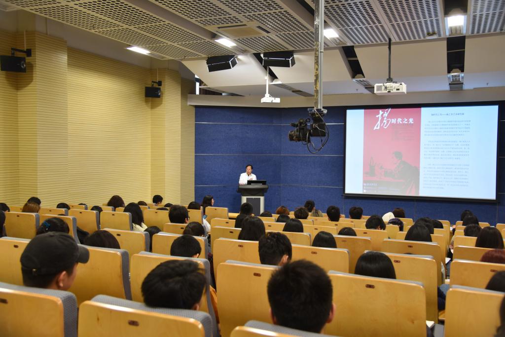 课上,谢昌晶以“坚定文化自信聆听时代声音坚持艺品双修——学习和践行习近平新时代文艺思想”为题,解读了习近平总书记在学校思想政治理论课教师座谈会上的重要讲话精神,总结概括了重要讲话的核心要义,通过回顾党的十八大以来习近平总书记关于文艺工作的重要讲话、重要回信,系统讲述了习近平新时代文艺思想的基本内容和主要特征。他结合今年年初李希书记到我校调研指示精神,重点讲解了我省在贯彻落实粤港澳大湾区建设国家重大发展战略下繁荣发展文艺的主要举措,介绍了我校贯彻落实习近平总书记重要讲话精神以及党和国家文艺发展政策的具体措施,从历史与现实两个维度回望了我校一贯坚持弘扬主旋律、传播正能量的艺术实践和经典作品。他勉励大家坚定文化自信、坚守艺术理想、坚持艺品双修,努力创作出反映和讴歌新时代的艺术精品。