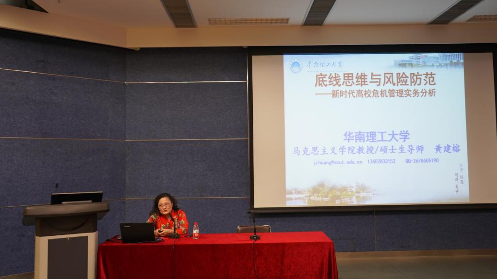 4月2日下午,我校特邀华南理工大学心理咨询与健康教育中心主任黄建榕教授在J栋101课室作题为“底线思维与风险防范—新时代高校危机管理事务分析”的专题报告。学校党委副书记、纪委书记穆林,学生处、团委负责人及全体干部,各学院书记、专职副书记和全体辅导员参加了报告会。学生处处长林胜主持报告会并对3月份学生工作开展情况做了梳理和总结,穆林作总结讲话。