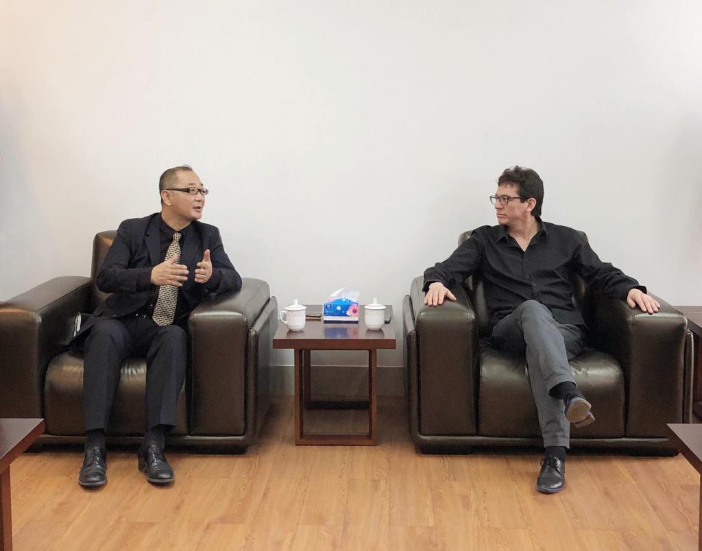 谢昌晶首先对Alfredo Vega-Cardenas的来访表示欢迎,他表示,中法两国的文化交流源远流长,新时代下两校的合作非常有意义,期待Alfredo Vega-Cardenas此次来访对进一步促进双方交流合作带来积极的推动作用。Alfredo Vega-Cardenas感谢我校的热情接待,回顾了两校近年来的交流,希望未来两校能有更多的合作机会。范勃与Alfredo Vega-Cardenas就两校互派师生交流、举办学术展览以及硕士联合培养等方面进行了积极的磋商,并达成了初步的一致意见。