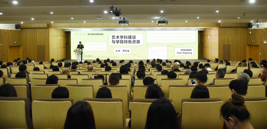 3月27日,受聘仪式结束后,中国美术学院艺术人文学院院长、博士生导师,牛津大学博士,著名艺术史家,中国艺术教育研究院常务副院长、全国艺术专业研究生学位教育指导委员会美术与设计分委会召集人曹意强教授在昌岗校区学术报告厅参加我校学科建设专题讲坛,为师生代表作题为“艺术学科建设与学院特色资源”演讲。学校党委书记谢昌晶,院长李劲堃,党委副书记穆林,副院长范勃、蔡拥华,各二级院系负责人,相关职能部门负责人及来自教学一线的骨干教师、研究生代表参加了讲坛。讲坛由研究生处处长沈康主持。