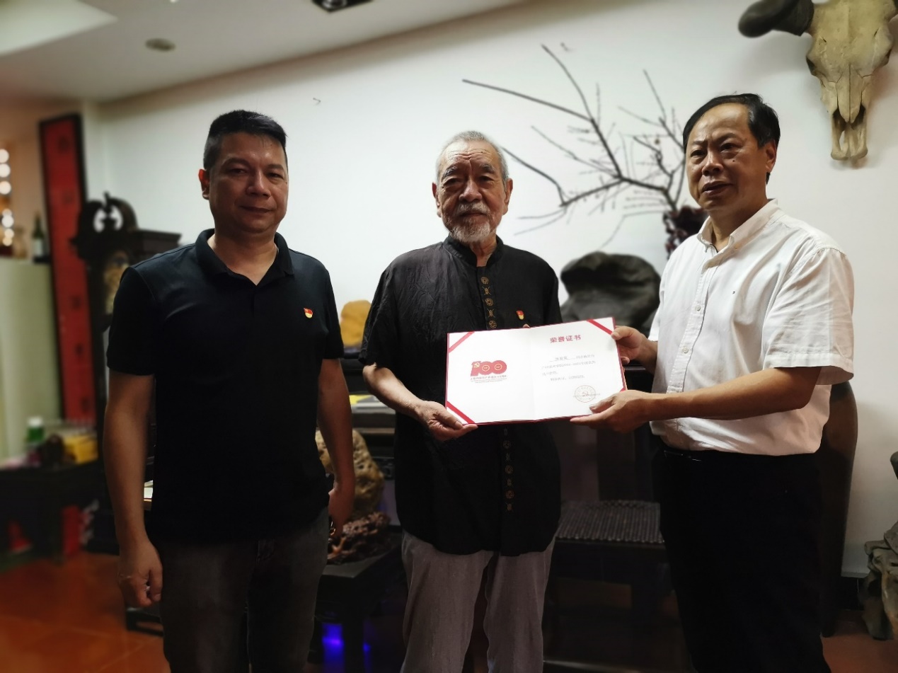 感受到党中央的关怀和学校党委的温暖,被慰问的老党员、老同志有发自内心的感动。曾亚田同志是我校一名离休干部,也是一名老军人,今年已94岁高龄,党龄68年,获得无数军功章、奖章,为庆祝党的百岁生日,他将自己平日收藏的党的主题的报纸、纪念章集中展示出来,以小型展览的方式热情讴歌党、礼赞党。已有64年党龄的我校退休老领导、老党员何广基同志,一直对党充满感恩之情,在党的百年华诞之际获得“光荣在党50年”纪念章,他欣然创作书法作品《荣获“光荣在党50年”纪念章感言》,表达“年老不忘初心志、牢记使命度晚年”的豪迈之情。刘崇智同志今年87岁,也是一名老军人,因身体原因正在住院治疗。当慰问人员到医院为其颁发纪念章时,他用“开心”、“激动”等简短的语言表达了自己的心情,并不由唱起《没有共产党就没有新中国》,场面令人动容。