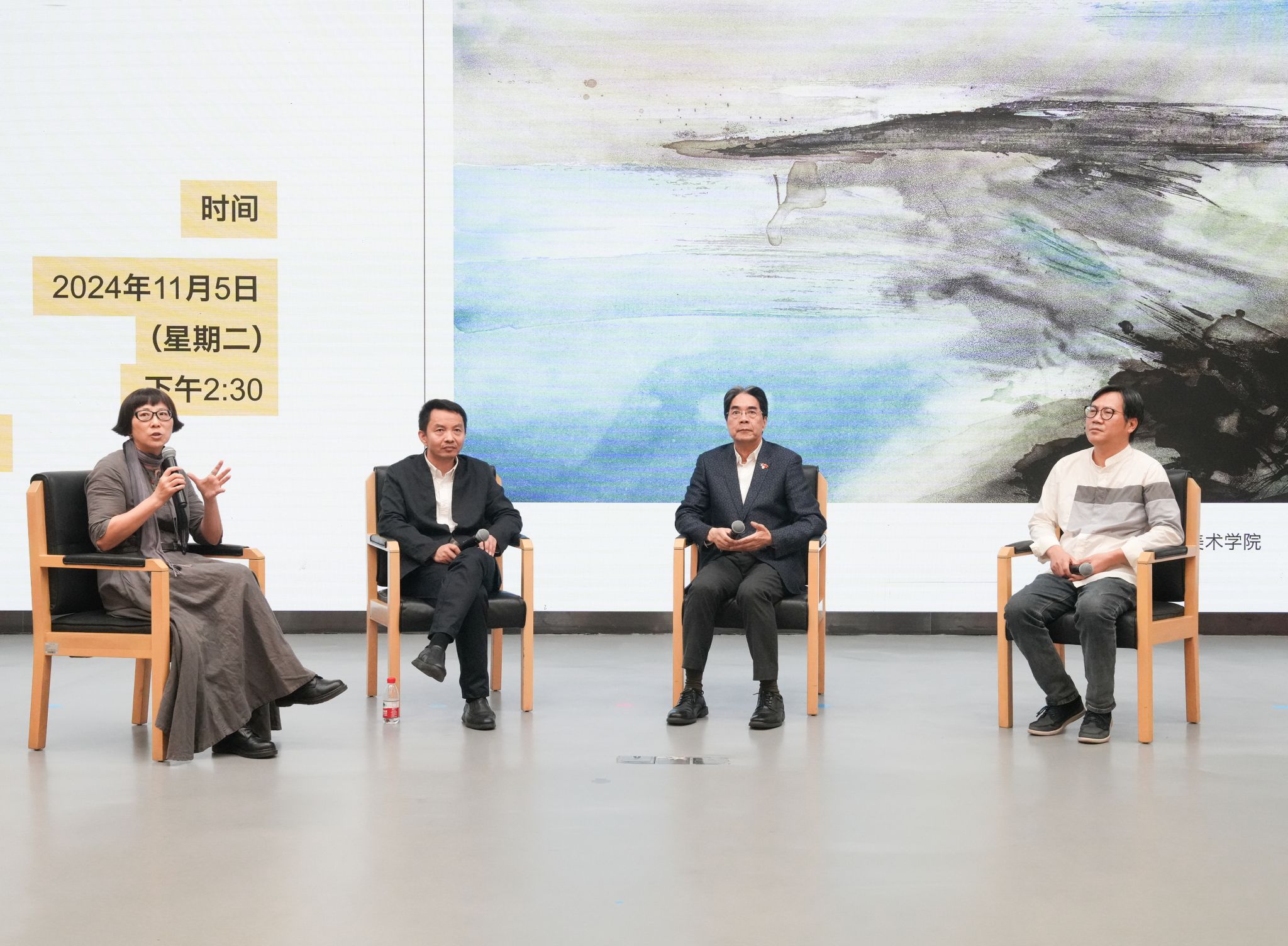 观影结束后,现场还举行了观影交流会。跨媒体艺术学院党总支书记劳业辛教授、艺术与人文学院院长胡斌教授、跨媒体艺术学院刘琛副教授与姚国强导演进行了深入的学术对谈。