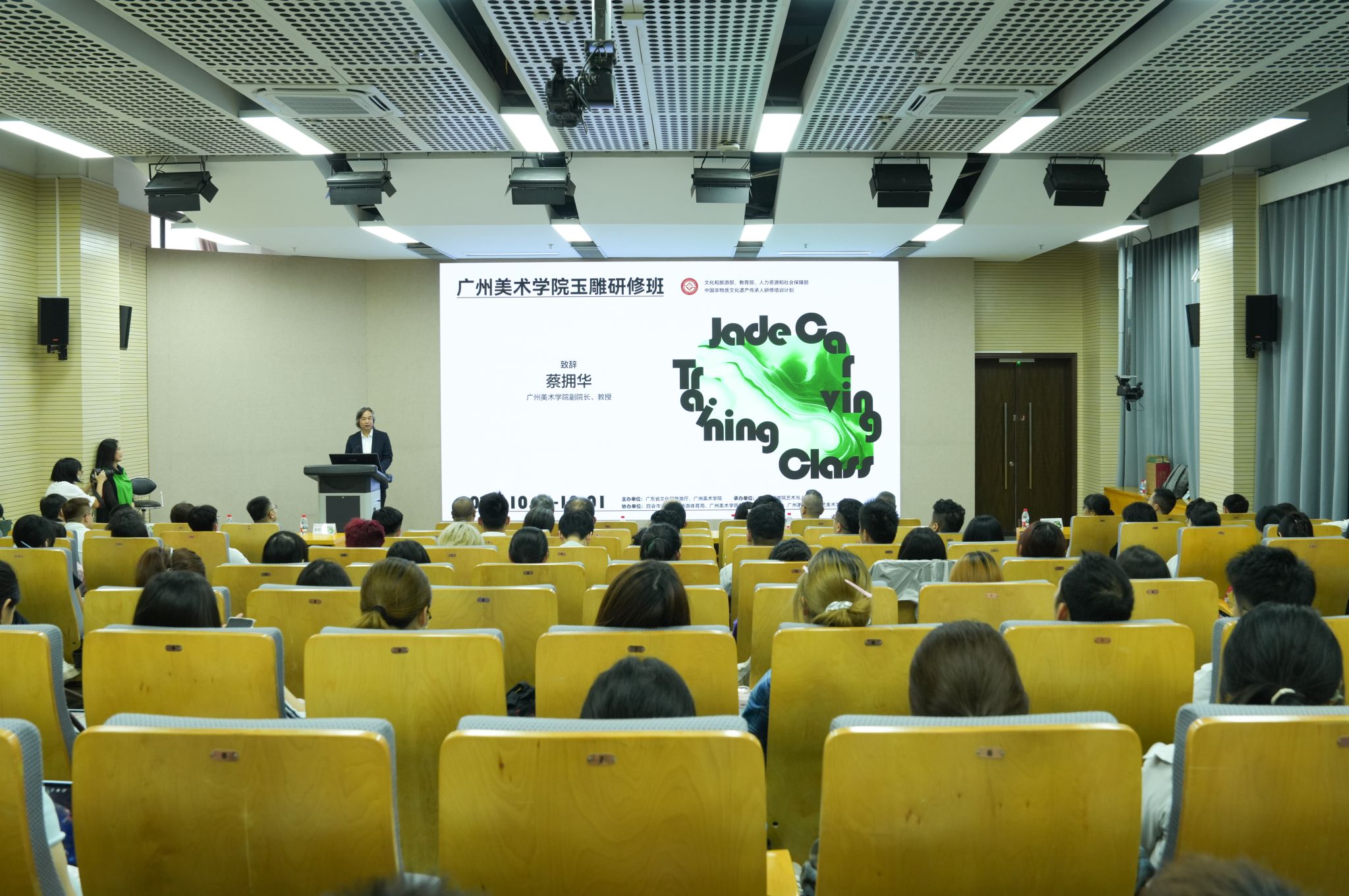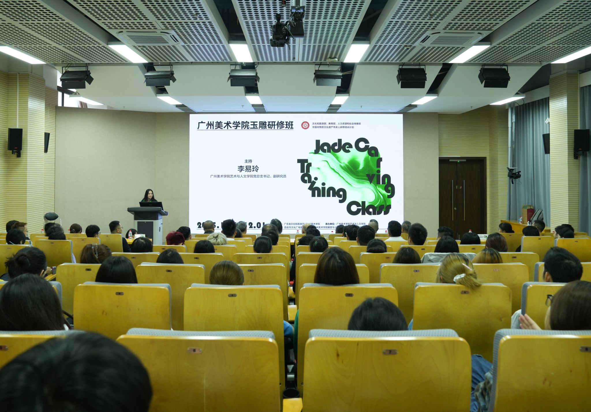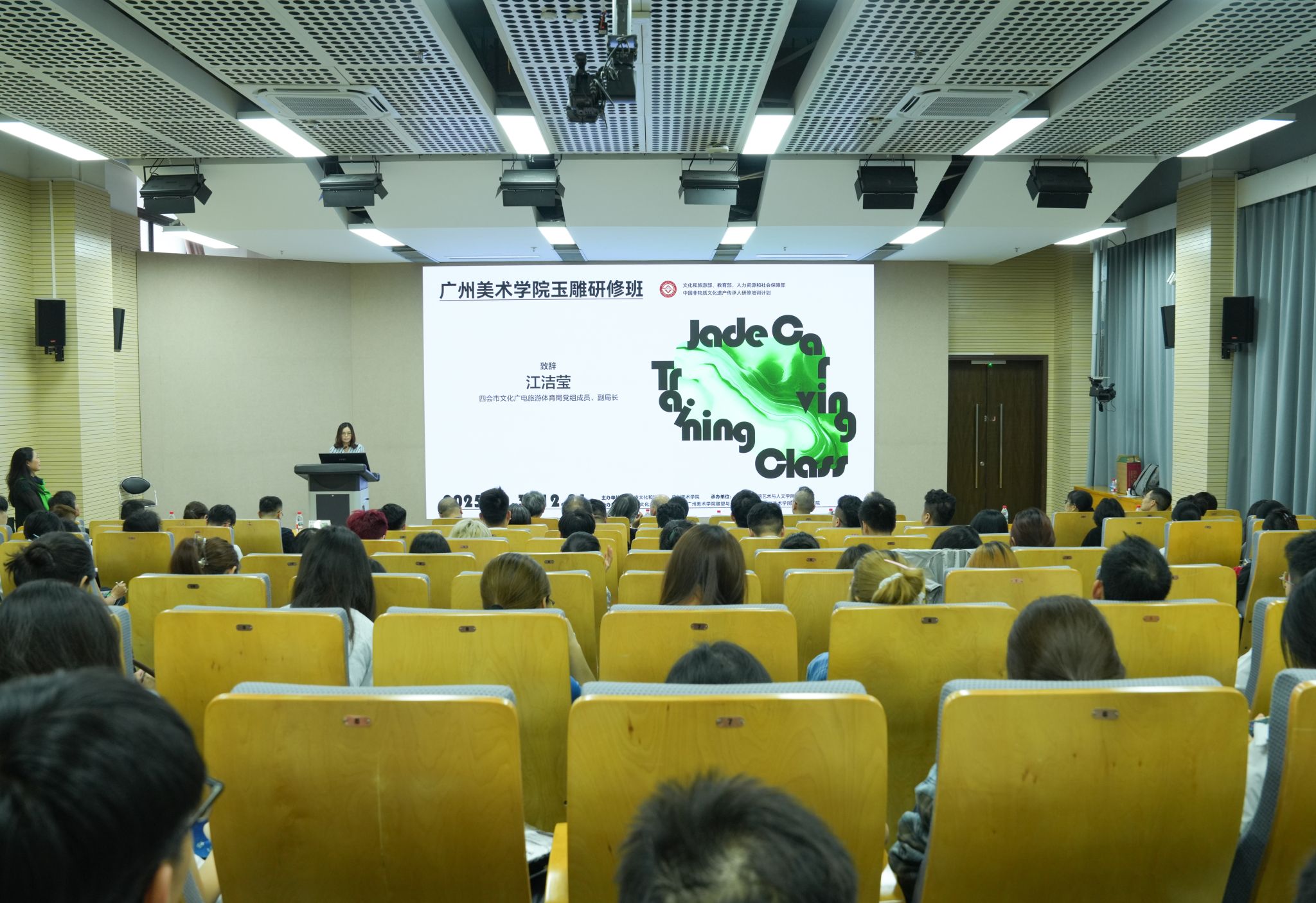 李易玲回顾了广美自2016年以来承办的非遗研培项目。她表示,学院已成功举办8期非遗培训班,积累了丰富的教学与实践经验。本次玉雕班是第九期,学院将整合校内外优质资源,构建“文化政策+专业核心+实践拓展+观摩交流”四大课程模块,通过专题讲座、实地考察、大师交流等形式,全面提升学员的审美眼光与创作能力。希望学员们珍惜学习机会,教学相长,共同搭建传统工艺学术研究与创作交流的高水平平台。