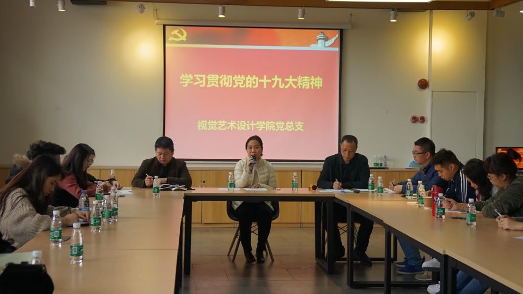 12月13日下午,视觉艺术设计学院党总支在我校大学城教学区A栋504会议室召开学习宣传贯彻“党的十九大精神”专题宣讲会。此次专题宣讲会由学校副校长林蓝主讲,视觉艺术设计学院党总支书记罗培庆、副院长冯乔,以及教工党员、研究生党支部和本科生党支部全体党员参加,罗培庆主持。