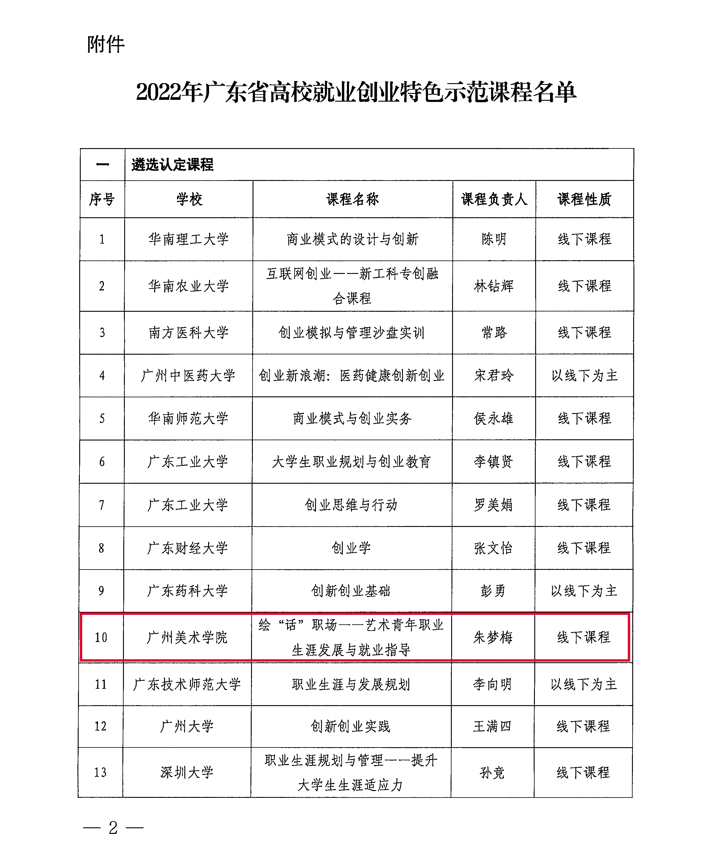 近日,广东省教育厅公布了2022年全省高校就业创业特色示范课程名单,我校特色课程《绘“话”职场——艺术青年职业生涯与就业指导》成功入选,充分体现了我校在就业创业课程建设方面的成果。