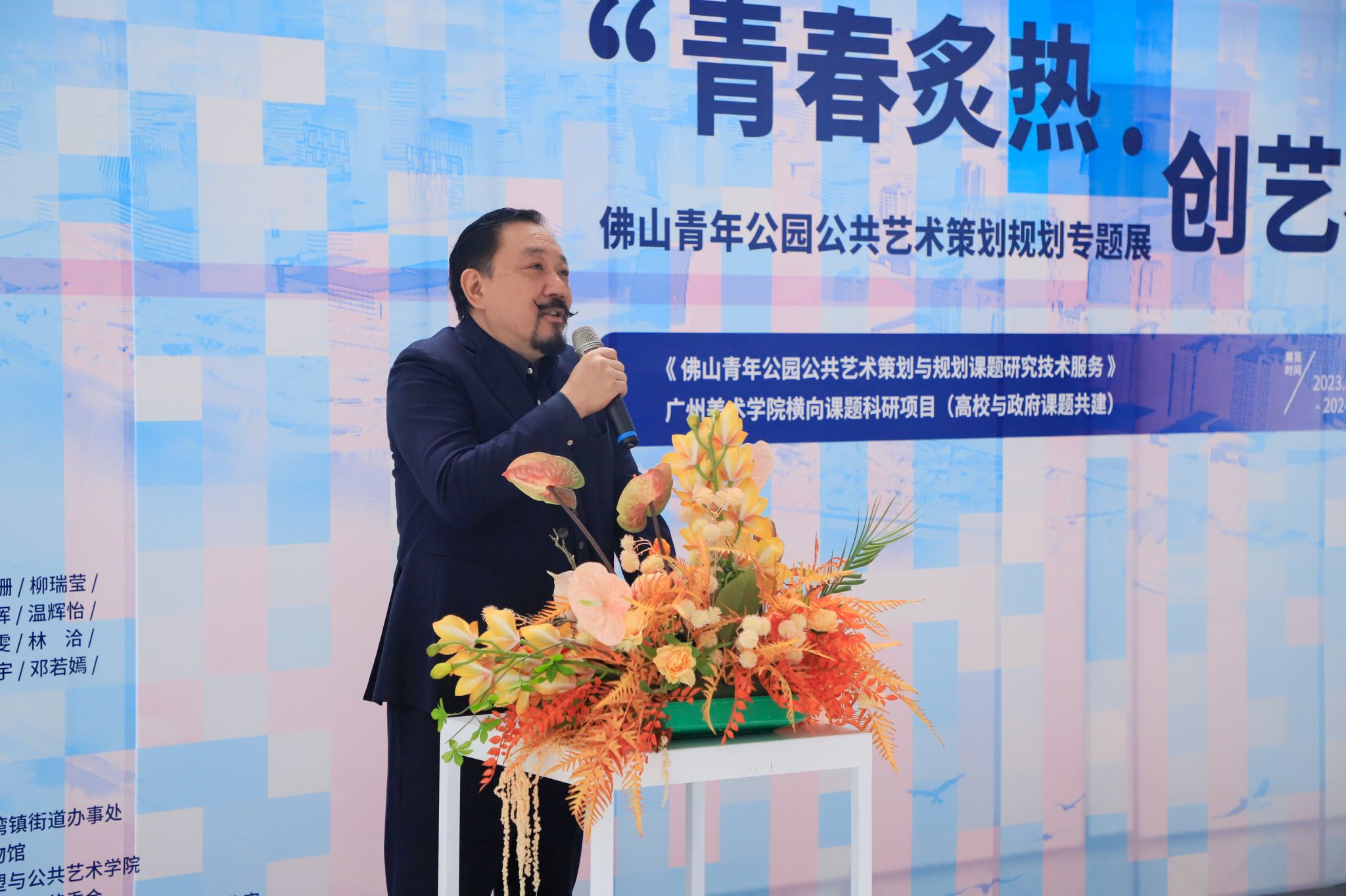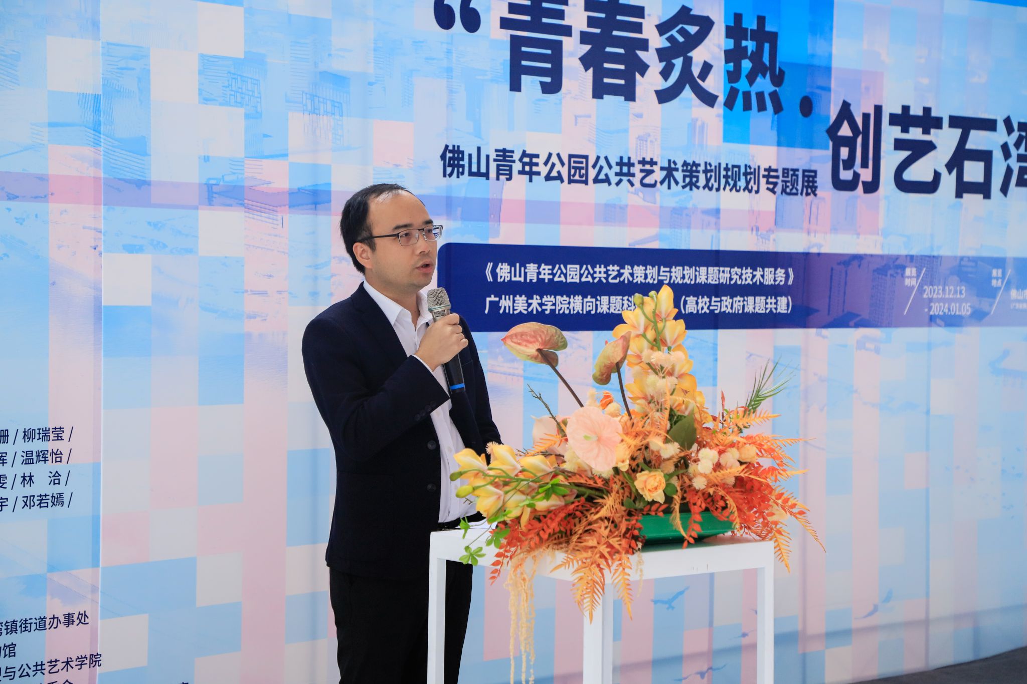 王浩对此次课题开展与课程教学情况作汇报,他指出本次专题展是基于今年7月2025新澳门2025免费原料网与佛山市禅城区石湾镇街道办事处签订的横向课题《佛山青年公园公共艺术策划与规划课题研究技术服务》的建设目标与任务,开展具体的教学研究活动。通过“前期策划与导入式设计研究 + 《公共艺术策划》课程实题教学”结合的方式,以“公共艺术引领城市更新”为导向,进行实践型公共艺术策划专题教学及专业研究。