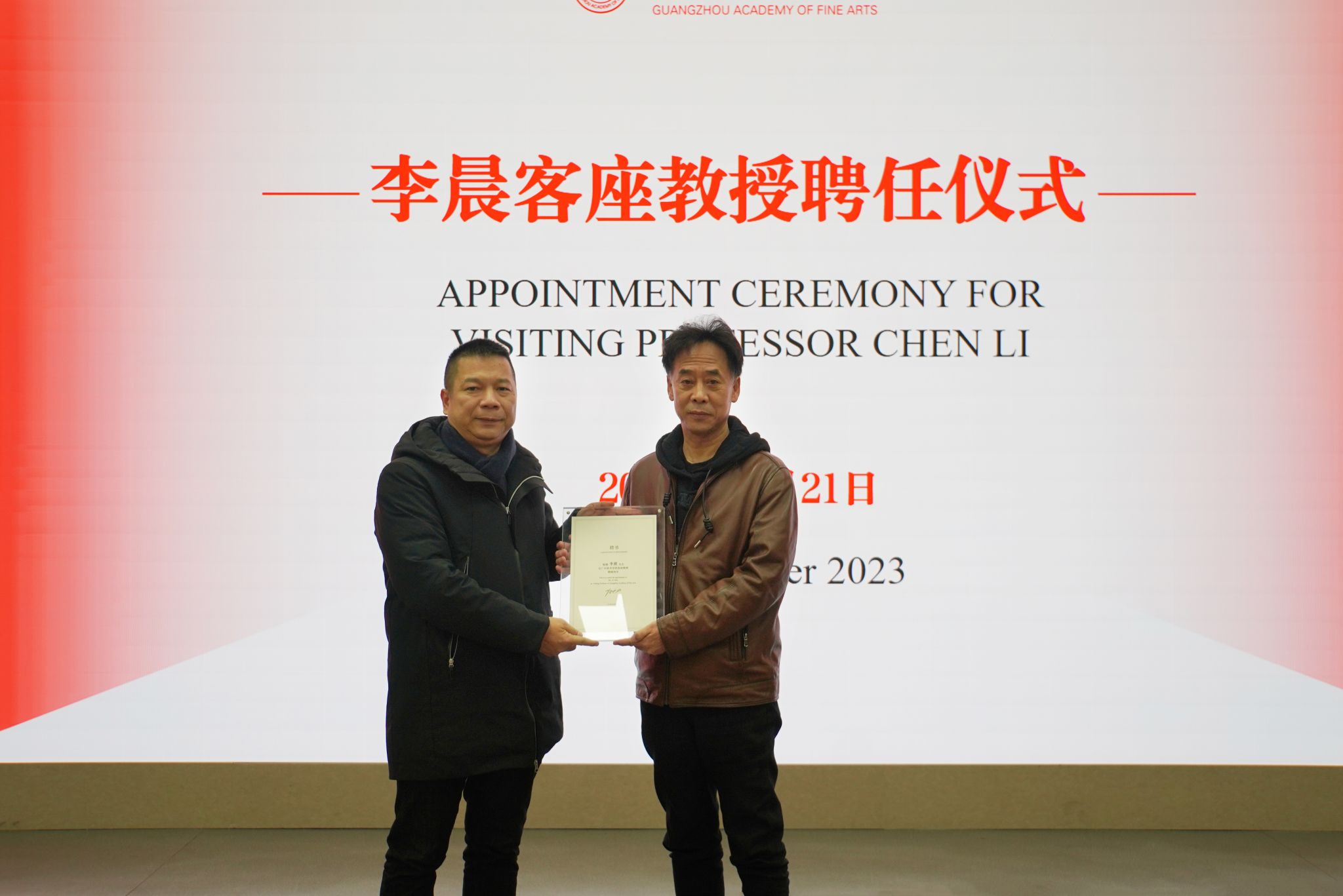 12月21日下午,我校在大学城校区举行李晨客座教授聘任仪式。学校党委副书记宋光智,绘画艺术学院负责人及师生代表出席了聘任仪式。宋光智为李晨颁发客座教授聘书,仪式由绘画艺术学院副院长胡贤武主持。