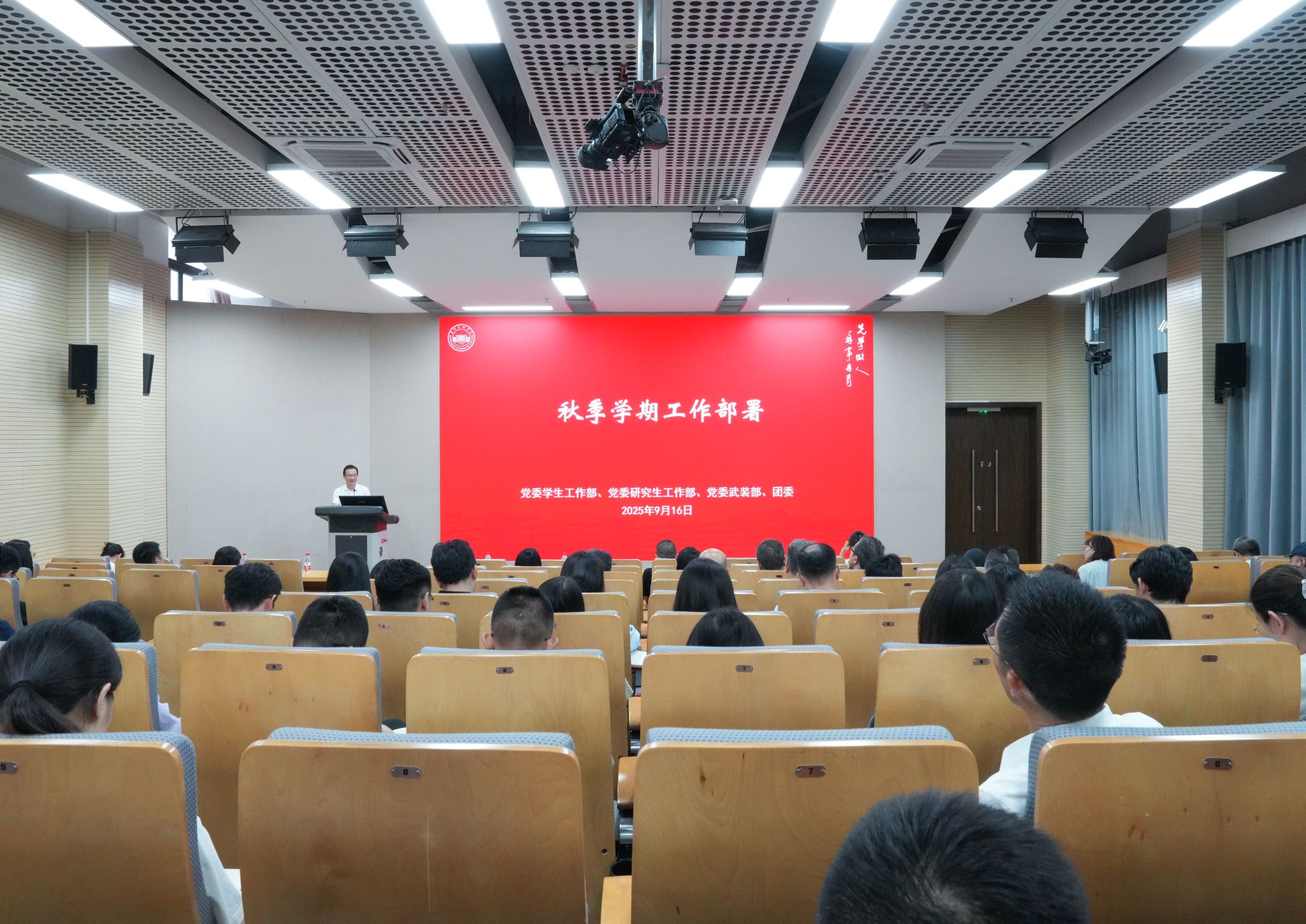 9月16日下午,我校召开2025年秋季学期学生工作会议。学校党委副书记宋光智,各学院党总支书记、专职副书记,全体辅导员,党委学生工作部、党委研究生工作部、党委武装部、校团委全体干部参加了会议。会议由党委学生工作部部长、党委武装部部长孙凯军主持。