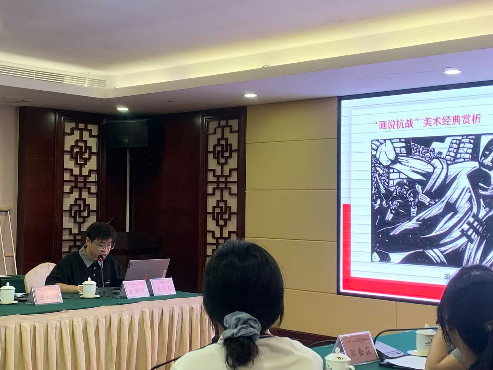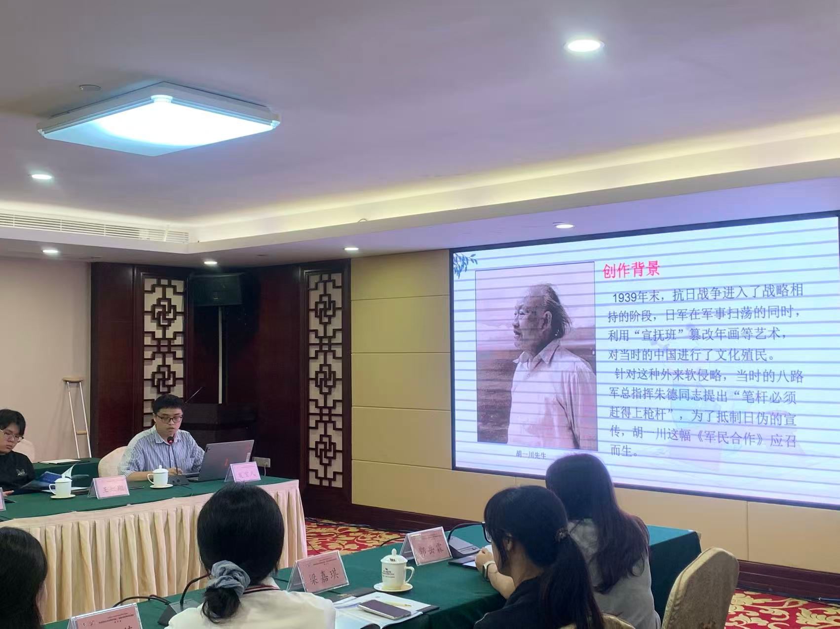 马克思主义学院院长徐平华作了“艺术思政初探——基于《在文艺工作座谈会上的讲话》”主题报告。报告解析了《在文艺工作座谈会上的讲话》的重要内容、主要范畴、时代价值,结合艺术院校的具体实际,提出“艺术思政”观点,引发学者的思考和讨论。马克思主义学院2024级研究生匡瑞明、2025级研究生黄剑标参加马克思主义理论研究生论坛,分别分享了“画说伟大抗战精神——以广美马院研究生艺术思政实践为例”“画说伟大抗战精神——以版画《军民合作》为例”的研究心得。广州大学马克思主义学院副院长吴阳松教授对两位研究生的汇报给予点评,认为选题新颖、框架清晰、颇具特色,突显了美术院校研究生较好的问题意识。