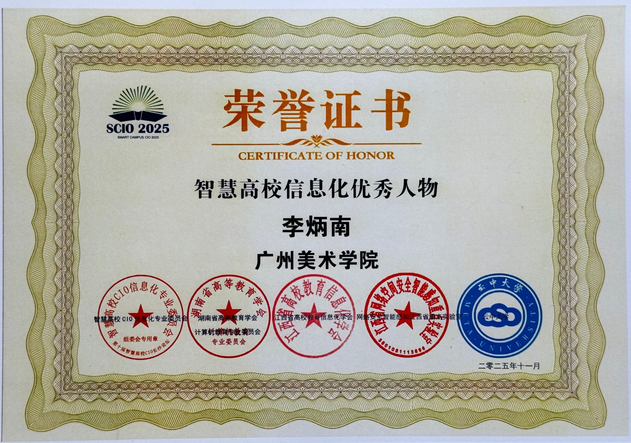 经论坛评审委员会评议与投票,我校凭借在智慧校园建设领域的综合实力与显著成效,荣获2025年“智慧高校数字化建设综合实力卓越奖”。同时,我校信息技术中心李炳南同志获评“智慧高校信息化优秀人物”。这两项荣誉是对我校整体数字化建设水平与信息化团队专业能力的高度认可。