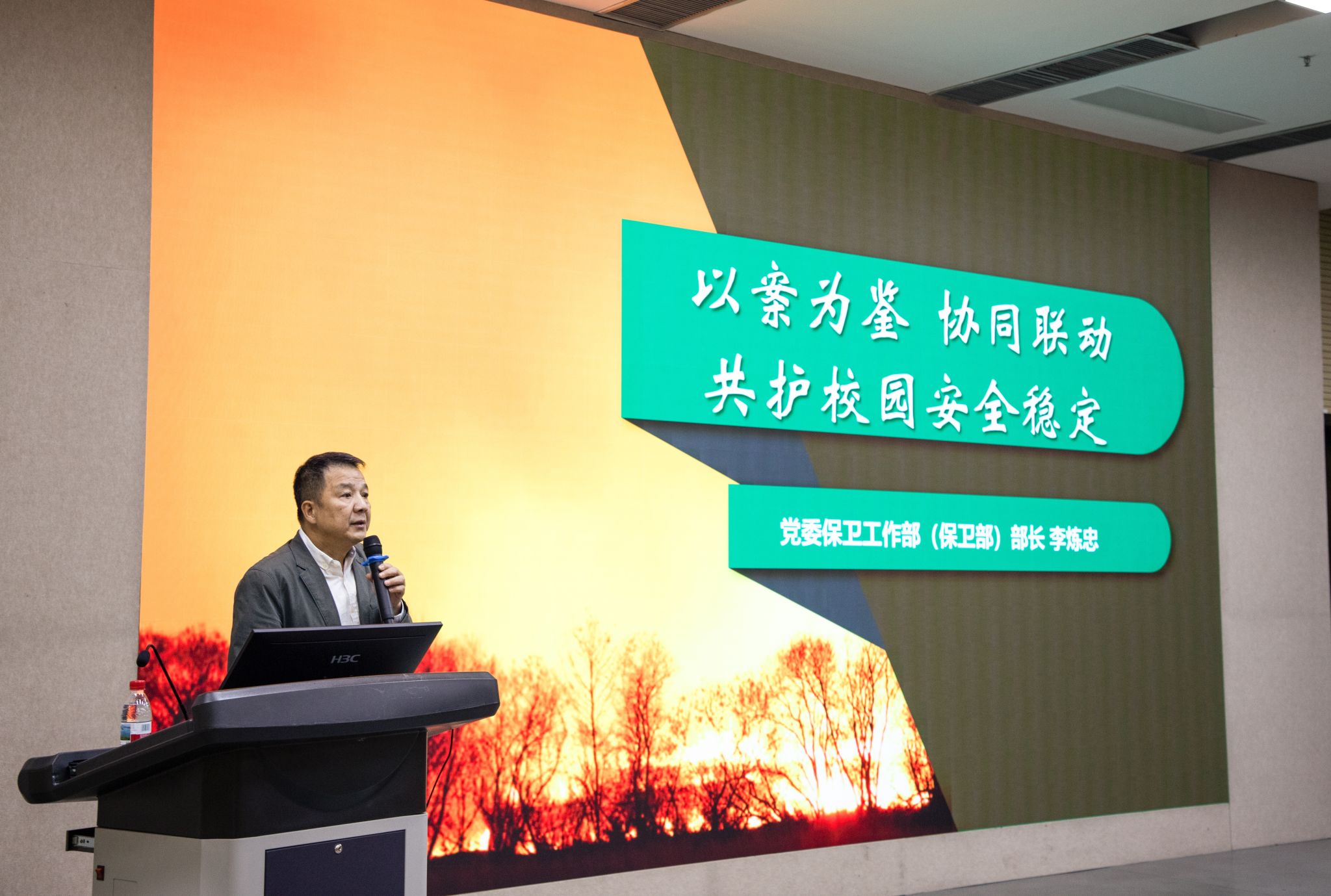 会上,党委保卫工作部部长李炼忠围绕“以案为鉴,协同联动,共护校园安全稳定”主题作校园安全工作通报及部署,系统梳理了近年来学校在政治安全、治安管理、交通安全、消防安全、反诈防骗等领域发生的典型案例,深入剖析了当前校园安全工作面临的突出问题。结合工作实际,他从协同联动机制建设出发,重点明确了后续校园安全防范、隐患排查、应急处置等方面的具体路径和工作要求。
