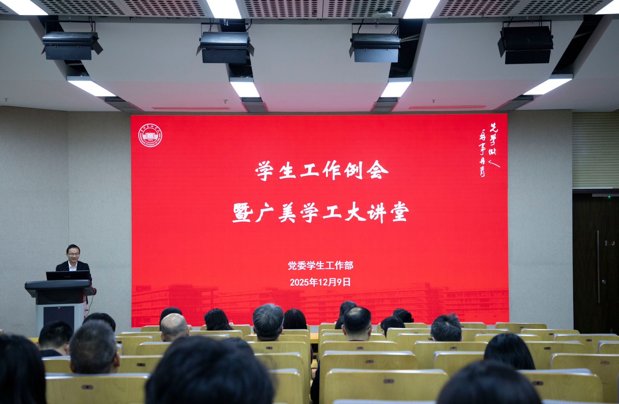 此次学生工作例会暨广美学工大讲堂的召开,既压实了校园安全工作责任,又提升了学工队伍专业素养,为我校进一步提升学生思想政治教育工作质量、构建全方位育人体系奠定了坚实基础。