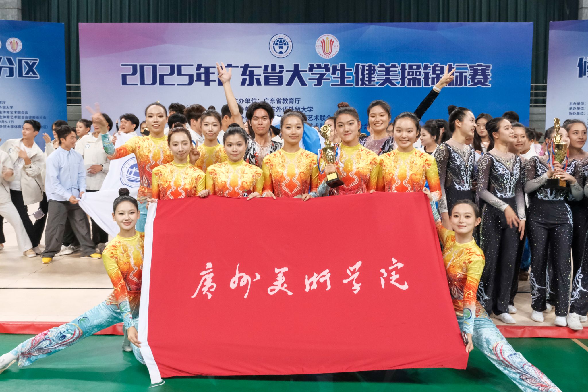 在较早举行的2025年广东省大学生健美操锦标赛及啦啦操锦标赛中,我校队伍展现出强劲实力,累计获得1项第一名、5项第三名及其他多个名次,为本次全国赛事奠定了良好基础。队伍由不同学院的本科生组成,在日常训练中,队员们将艺术专业的素养融入技术动作编排与表现力提升中,演绎出独属于广美人的美感与创意,真正诠释了“艺术与体育融合”的深刻内涵,展现了我校学子跨领域发展的综合素养。