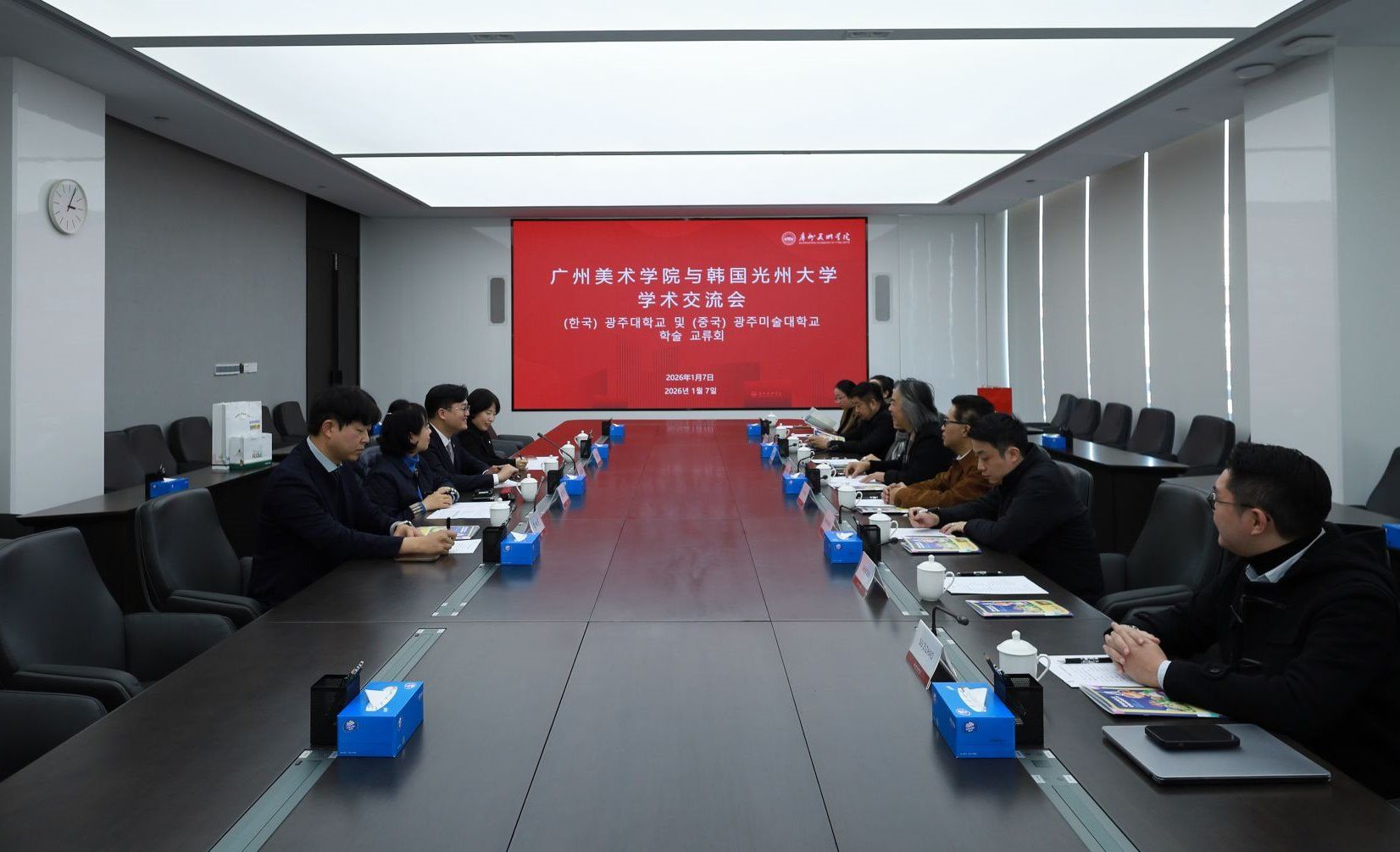 会上,双方就国际联合课程、重点专业合作、交换展览等议题展开交流。