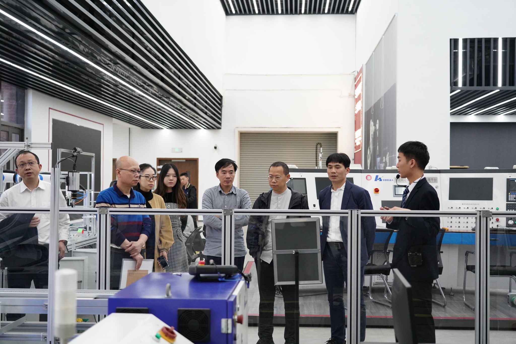 调研团队一行首先听取了华工广州国际校区的整体规划介绍,并参观了图书馆、峻德书院,以及果壳工坊、智能网联汽车创新室、智能微工厂、人工智能与机器人创新室等创新工场。随后,团队一行与国际校区各部门负责人展开座谈。