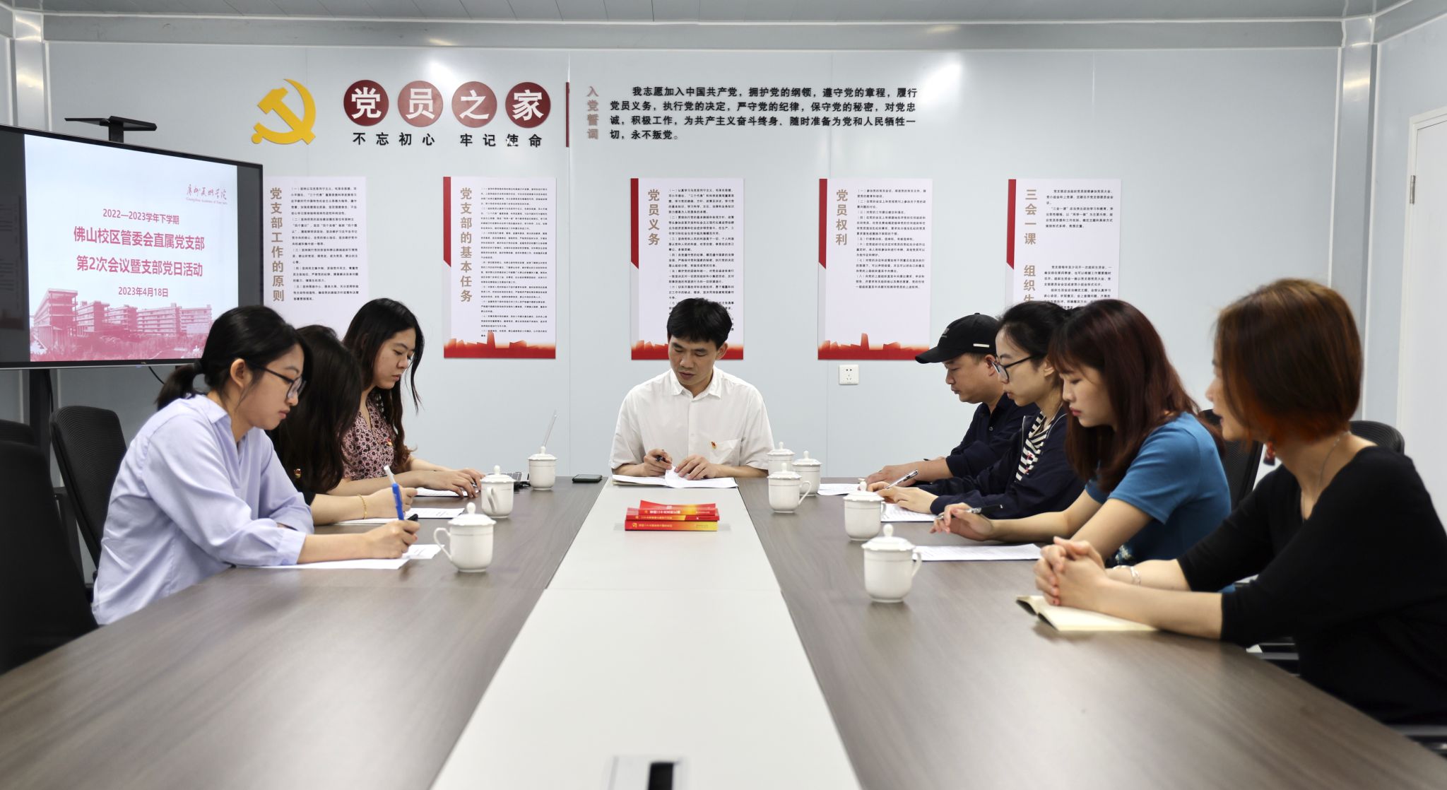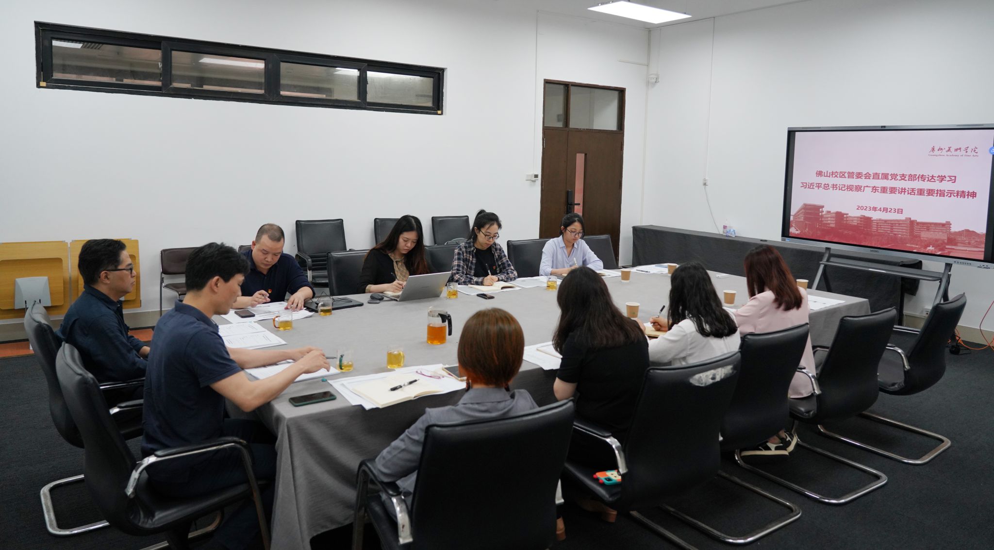 4月18日、23日,我校佛山校区管委会直属党支部分别在佛山校区项目指挥部党员活动室和大学城校区B302室召开学习贯彻习近平新时代中国特色社会主义思想主题教育专题学习会议。管委会常务副主任伍端、管委会直属党支部全体党员及入党积极分子参加了会议,党支部书记、专职副主任郑浩华主持会议。