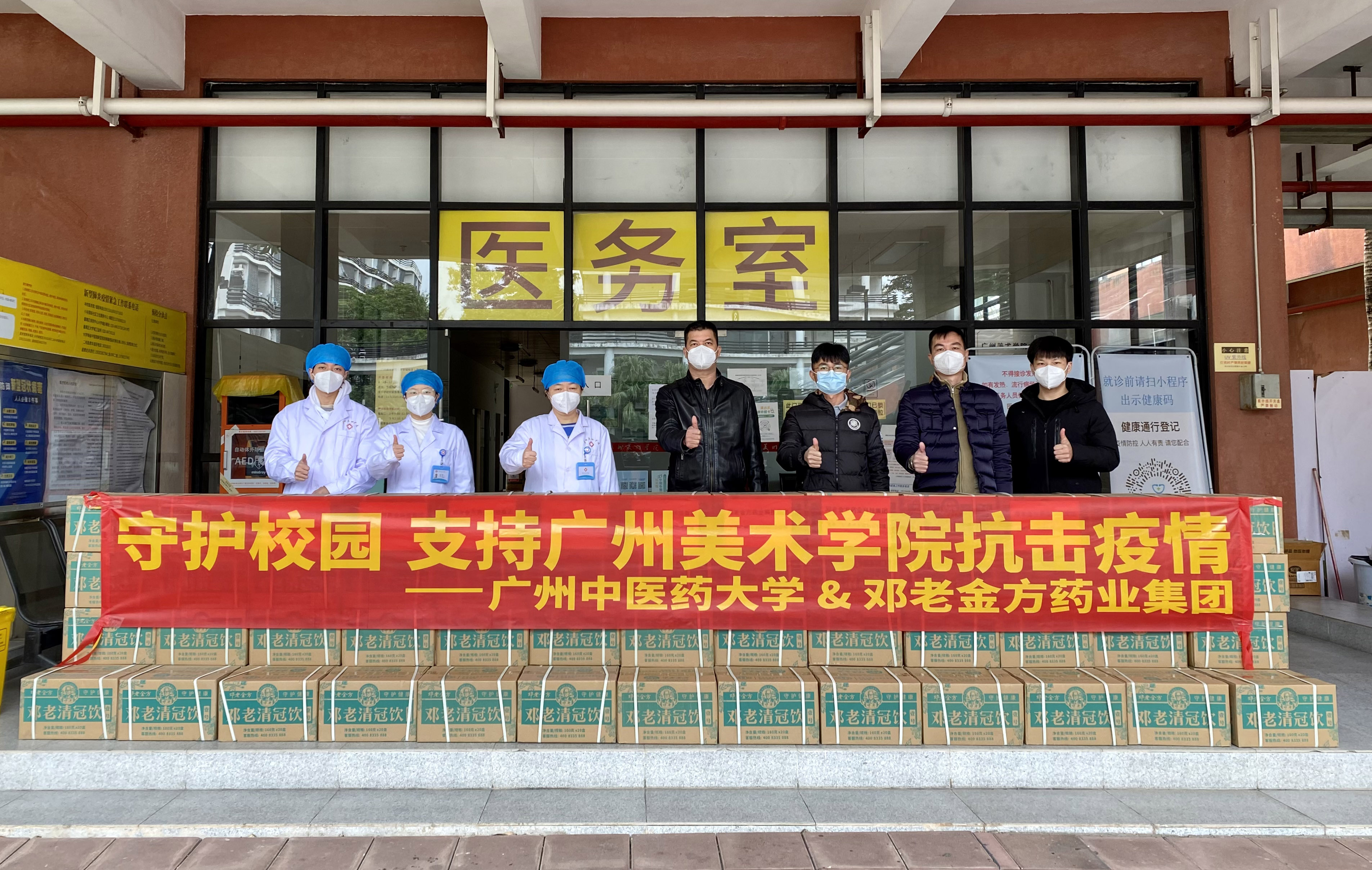 近日,经广州中医药大学党委书记张建华与学校党委书记谢昌晶联系,广州中医药大学、邓老金方药业集团为我校捐赠了一批邓老清冠饮作为防疫物资,支持学校防疫工作。