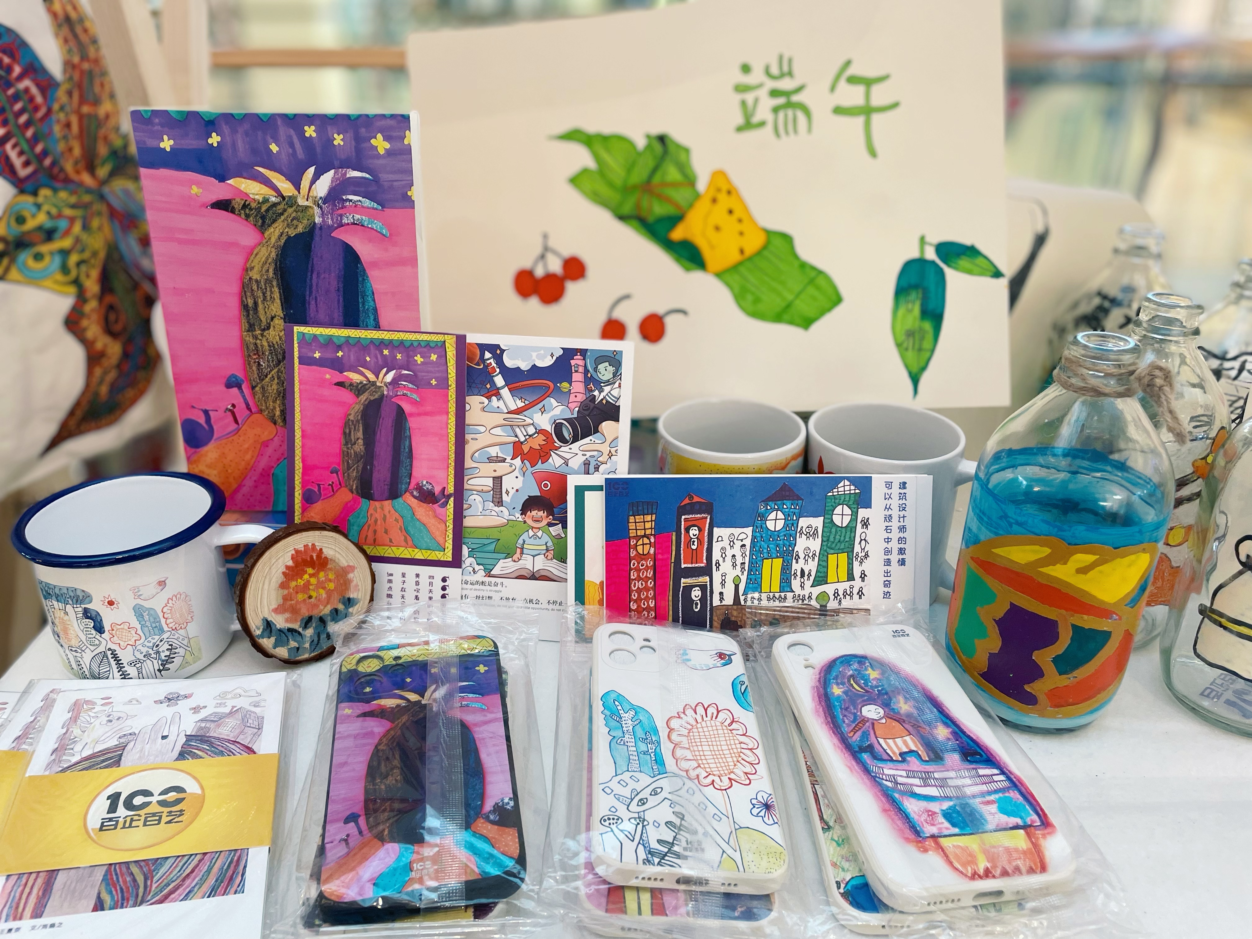 2021年9月起,项目联合我校视觉艺术设计学院,由14位志愿者老师和学生,以一对一结对的方式,历时近两个月开展项目首期服务,与14位特需青年创艺者共创20幅绘画作品,并对其进行设计,最终形成文创产品样品。为全市残障文化创作群体提供实操性的对外推广和链接合作模板。
