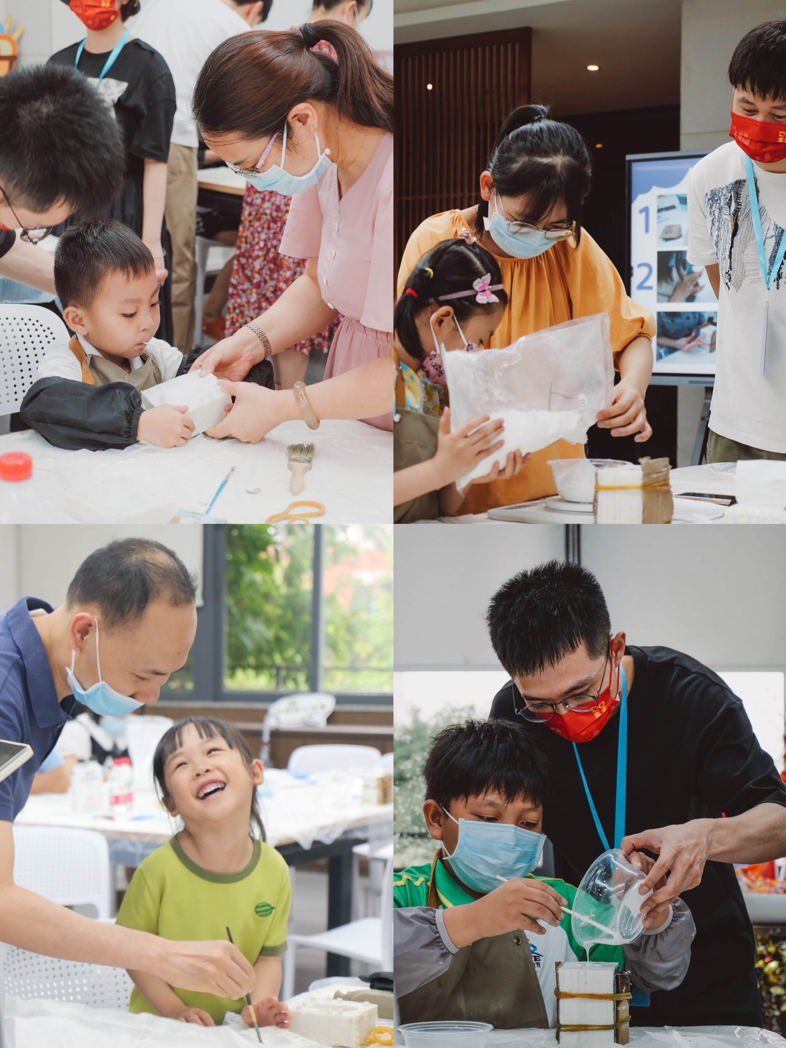 活动上,志愿者为小朋友介绍了“冰墩墩”诞生的故事,演示“冰墩墩”翻模流程,并带领小朋友一起体验“冰墩墩”石膏翻模。小朋友们发挥天马行空的艺术创意,给“冰墩墩”增添不同的色彩,制作属于自己的“冰墩墩”,并作为礼物送给在防疫一线辛勤奉献的爸爸妈妈。