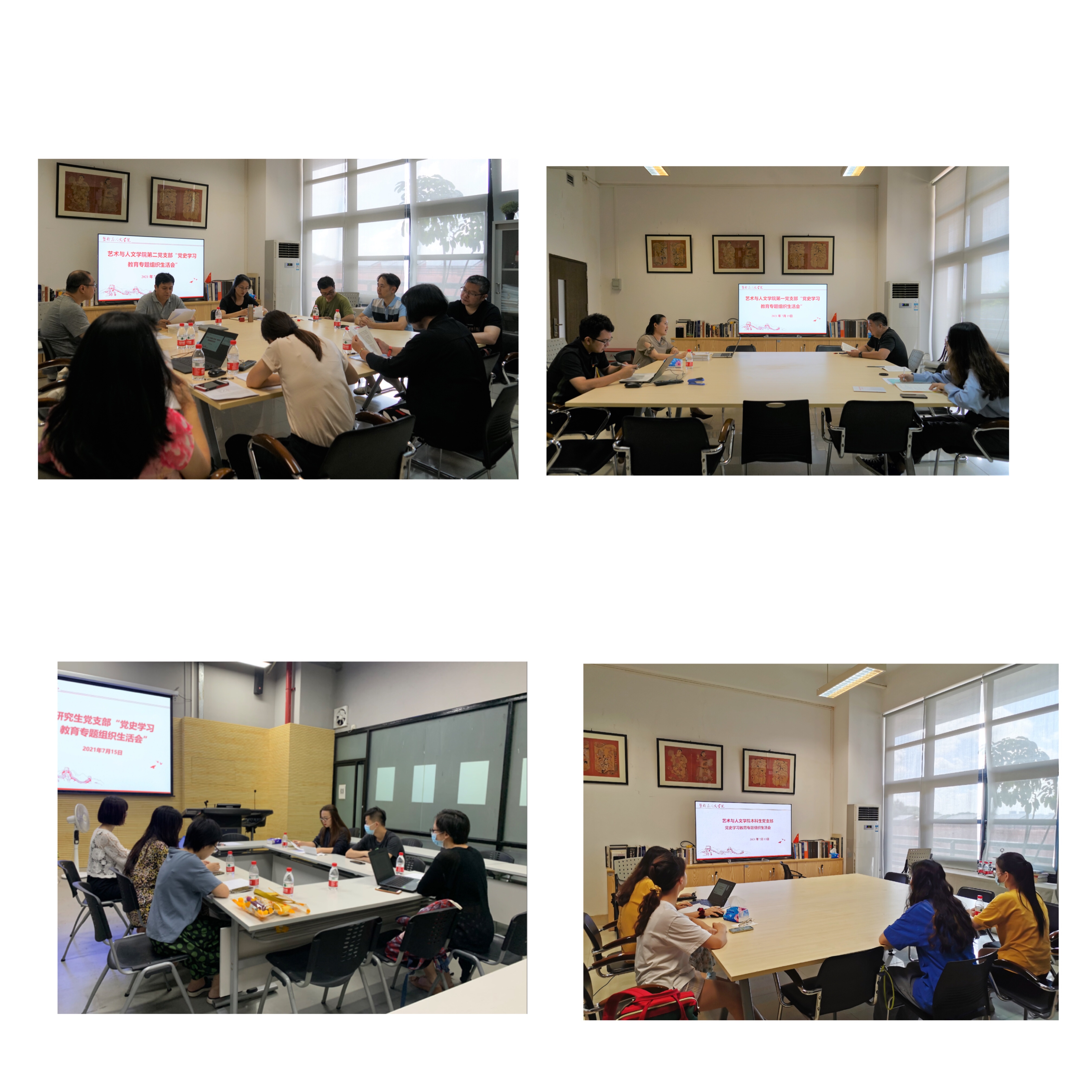 7月13至15日,艺术与人文学院各党支部分别开展党史学习教育专题组织生活会,学院党总支书记李易玲、副书记于兆杰,党总支支委、党支部书记、全体师生党员参加了会议。各党支部书记分别主持会议。