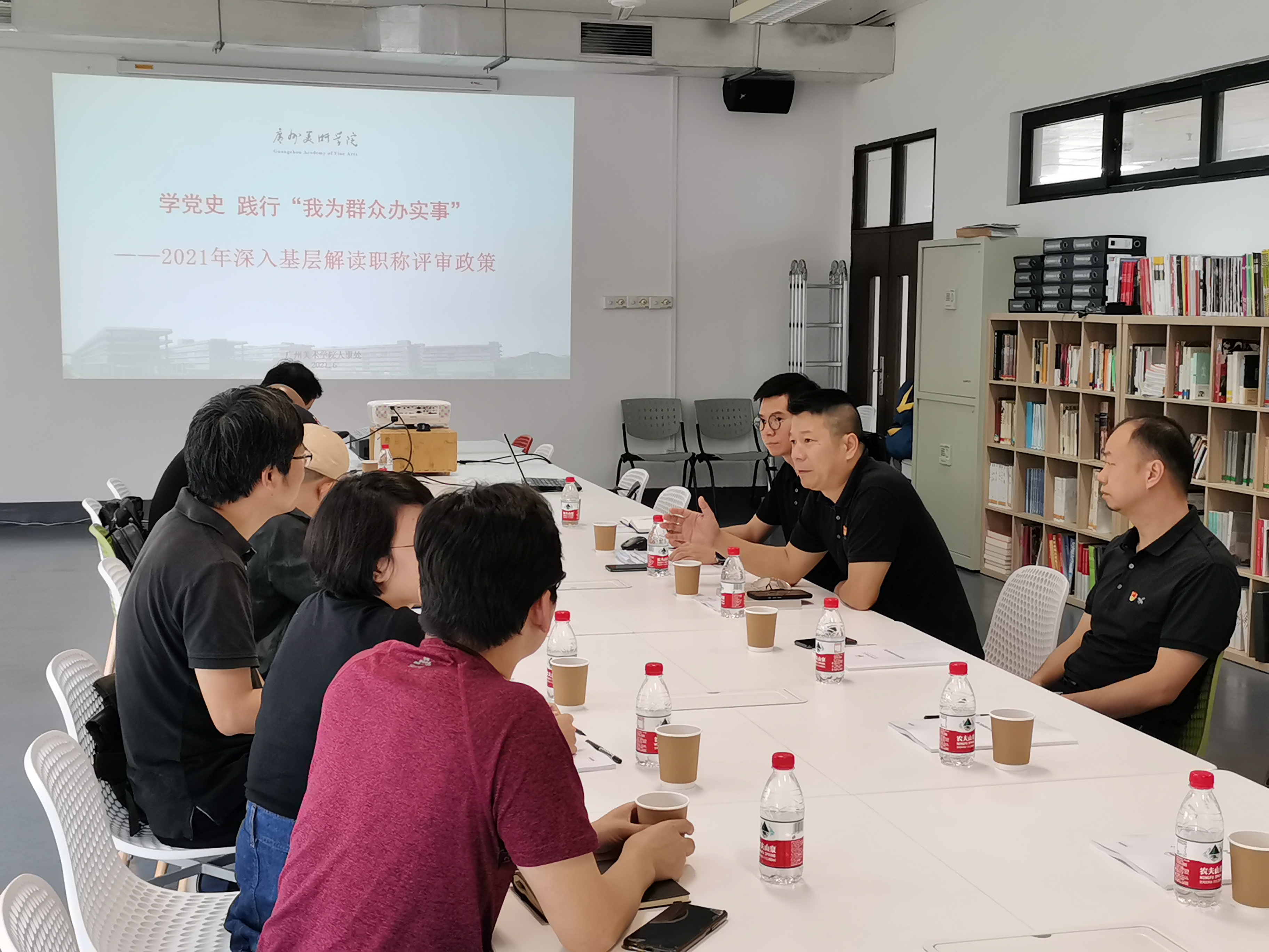 “学党史,我为群众办实事——深入基层解读职称评审政策会议”从解决教职工实际问题出发,围绕近年来学校职称评审中教职工关注度高的问题,就政策解读、申报流程、材料准备与教师们进行了现场深入交流,教职工更加深入、准确了解职称评审的政策与要求,共同探讨了进一步完善教师职称评审机制的方向与方法,助力探索具有艺术院校特色的人才激励与评价制度体系。