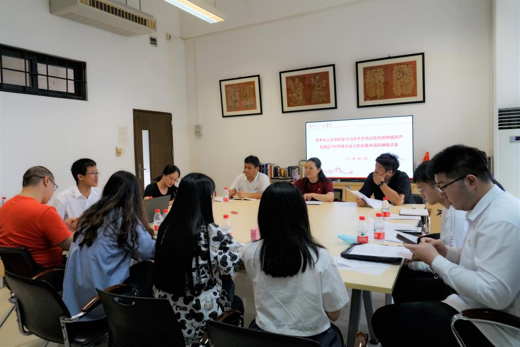 7月1日上午,艺术与人文学院师生党员、入党积极分子代表,在大学城校区E408集中收看庆祝中国共产党成立100周年大会。收看大会直播后,师生党员开展学习习近平总书记在庆祝中国共产党成立100周年大会上的重要讲话的座谈会,师生党员们围绕践行初心使命,结合工作、学习实际畅谈学习体会。学院党总支副书记于兆杰主持座谈会。