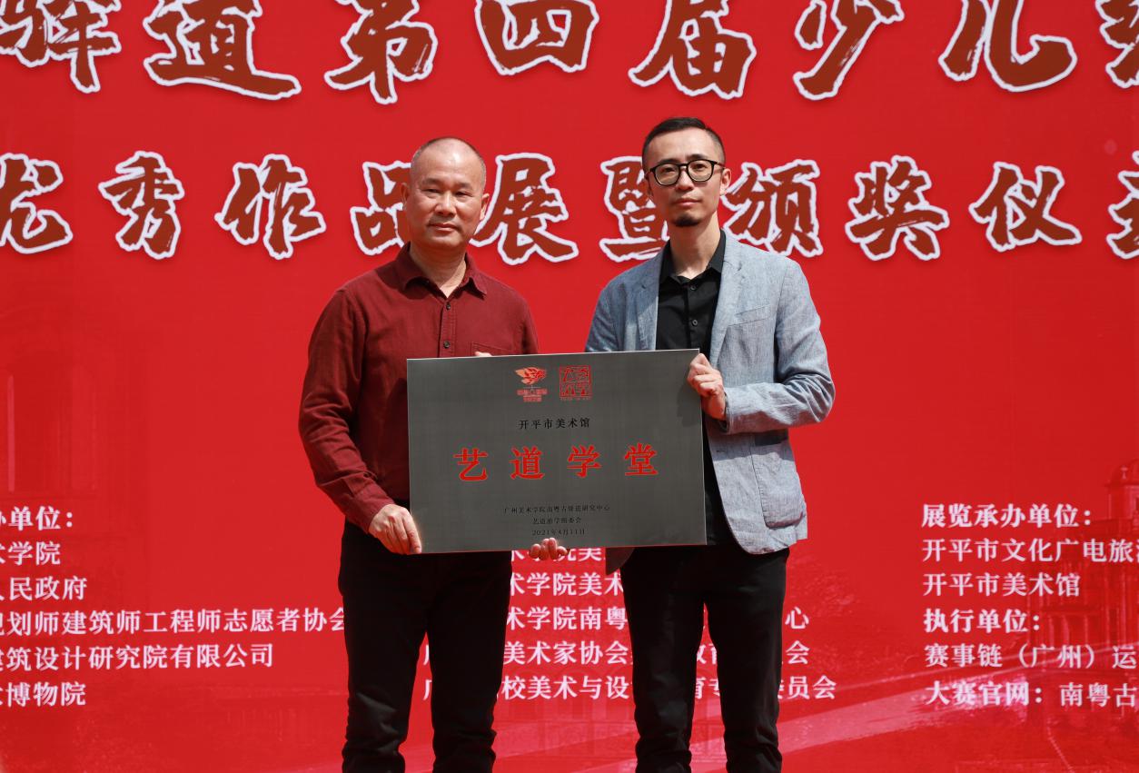 为响应许瑞生副省长关于“艺道学堂”的倡议,开幕式现场,广州美术学院南粤古驿道研究中心向开平市美术馆授予“艺道学堂”牌匾,期许共同为历史文化传承的创新性转化贡献力量。