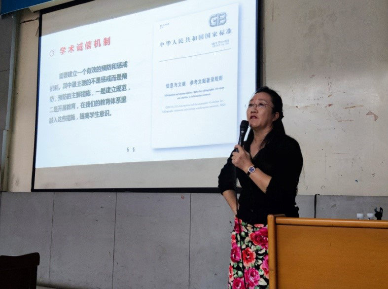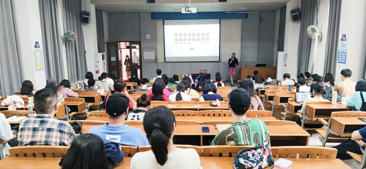 回雁雁教授以近年来部分高校发生的学术不端案例为引子,从多个角度阐述了学术规范的重要性,以学术失范导致的严重后果警醒同学们,并强调高校应广泛建立学术诚信机制、开展学术诚信教育、培养学术规范意识。回雁雁教授还列举了哈佛等海外知名大学的学术诚信理念,并结合个人海外求学经历,引导同学们在学术诚信的基础上,开发培养自身的批判性思维,提高学术创造力,努力成为社会的栋梁人才。