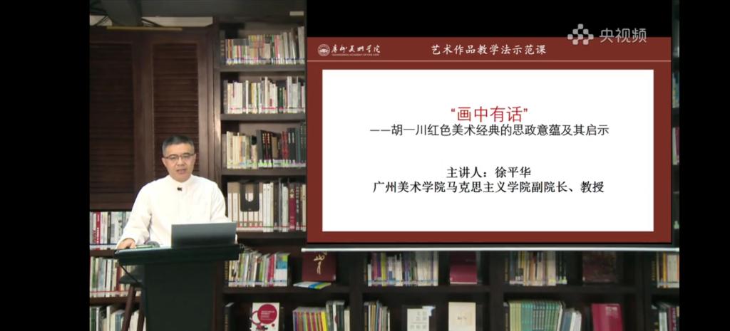 11月14日,思政公开课第三讲在我校举行,马克思主义学院副院长徐平华以“‘画中有话’——胡一川红色美术经典的思政意蕴及其启示”为题开讲,并在央视频同步网络直播。结合习近平总书记关于文艺工作的重要论述,徐平华通过对我校第一任校长胡一川先生的革命艺术创作《到前线去》《牛犋变工队》《开镣》等十幅红色美术经典赏析,阐述了胡一川先生将文艺与生活相结合、推动文艺大众化民族化等创作理念,展现了胡一川先生丰厚的人生底蕴和创作实践,激励同学们要传承好红色文化基因,把握艺术创作规律,守正创新,深入生活,扎根人民,为时代画像、为时代立传、为时代明德。