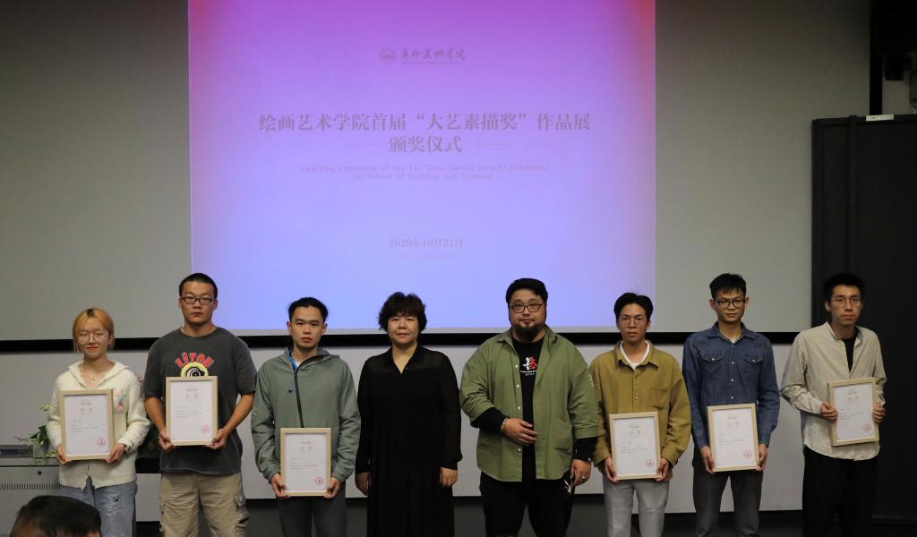 宋光智在致辞中介绍了绘画艺术学院简况以及学院深厚的学术传统,强调了素描在绘画艺术学院教学的重要性,希望通过“大艺素描奖”的评选和展览,激发同学们对素描造型研究的兴趣,从而推动素描艺术的探索和教学质量提升,希望通过优质资源的引入营造出浓厚的学术氛围。他对广州市大艺文化艺术基金会、百花美术用品有限公司的资助表达了感谢,对同学们在抗疫期间共克时艰、投入创作、积极投稿表示高度肯定,对获奖学生表示祝贺!