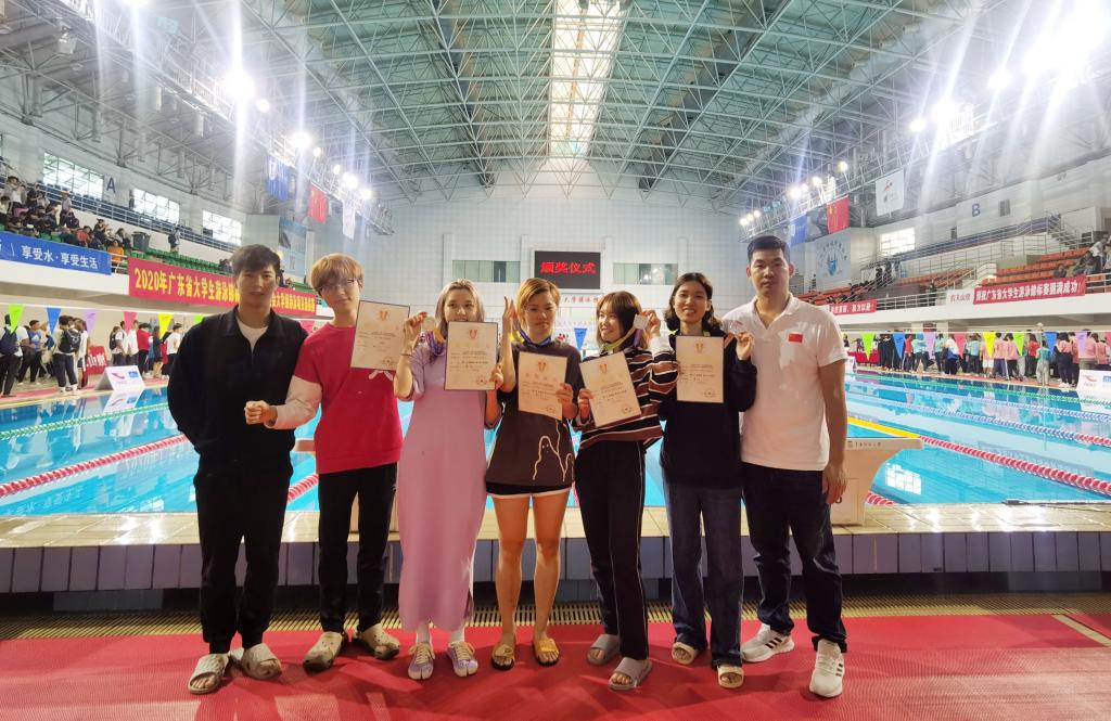 10月24日至25日,由广东省教育厅主办,华南师范大学承办的2020年广东省大学生游泳锦标赛暨全国学运会大学组游泳项目选拔赛在华南师范大学大学城校区游泳馆举行,我校组队参加了本次比赛。比赛中,广美学子不畏强手、团结合作、奋勇拼搏,与来自省内多所高校的游泳健儿角逐泳池,最终由黄一禾、黄绮褀、黄凡珂、高颍恩组成的接力队以打破我校记录的成绩获得女子甲组4×50米自由泳接力第二名,另外王博珩获得男子甲组100米蝶泳第七名。