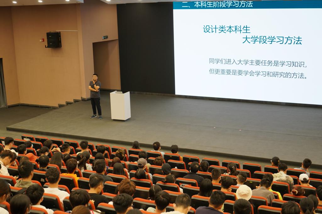 10月9日下午,工业设计学院2020级新生见面会暨新生系列教育第一讲在学术报告厅举行。学院党总支书记黄筠志、院长陈江、专职副书记裴悦舟、副院长彭圣芳及全体教师共400多人出席了本次会议。