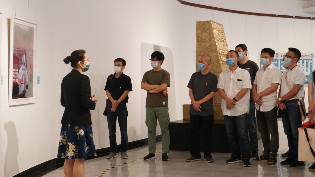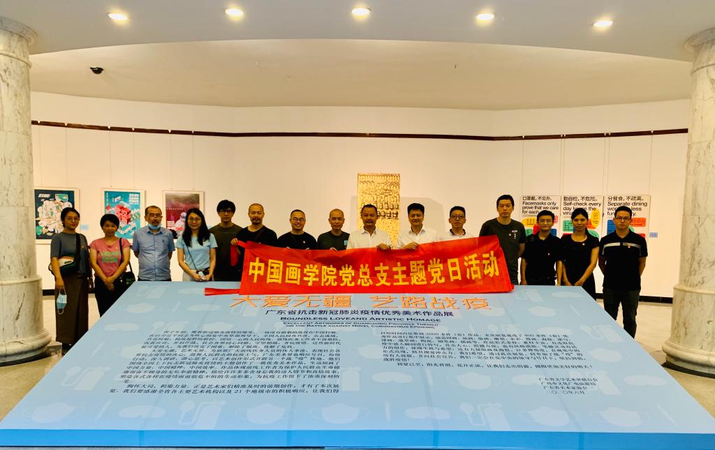 7月1日,中国画学院教工党支部前往广州市艺术博物院参观“大爱无疆,艺路战疫——广东省抗击新冠肺炎疫情优秀美术作品展”,现场进行创作初心分享及抗疫心得交流,开展主题党日活动。中国画学院党总支书记许敦平、副书记刘文东和教工党员,以及特邀为抗疫英雄画像的陈侗老师、高知教师代表何韵旺老师等参加活动。