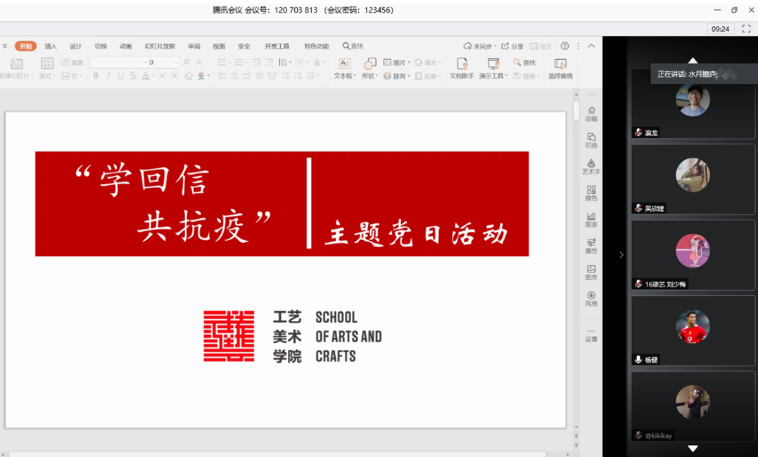 工艺美术学院党总支坚持将抓疫情防控和党的建设相结合,创新组织生活“线上过”与“硬要求”相结合,确保“组织生活不停顿”,努力做到思想政治工作和党员教育管理不放松。