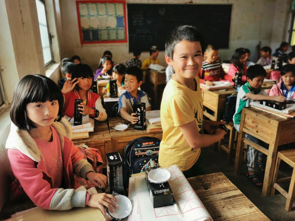 今年,我校附中校长丁松坚、副校长张伟、教师陈志瀚到金坑村广美艺术创作基地,为教师学员集中进行现场美术示范教学。扶贫工作队队员徐超义务为金坑小学三、四年级同学开设《硬笔书法课》和《毛笔书法课》培训课程,中国画学院为此次课程捐赠价值近两万元的培训材料,课程得到校方和家长们的一致好评。