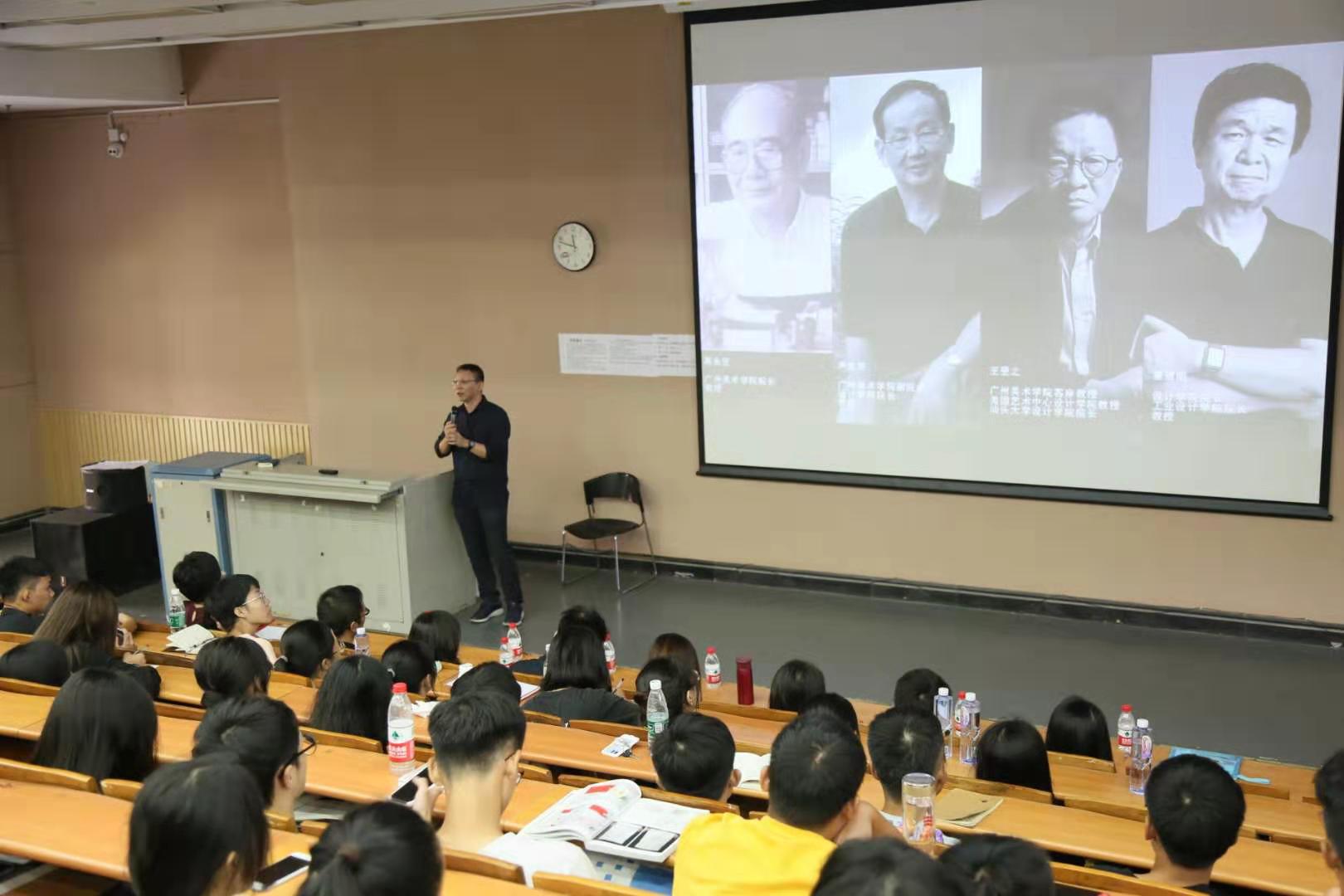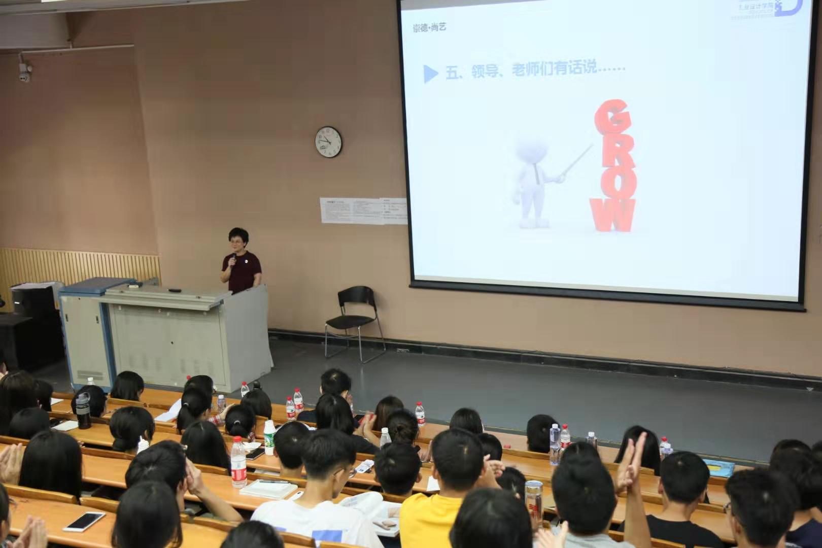 彭圣芳结合中国工业设计教育发展的历程,深入浅出介绍了广美工业设计学科的特点,以及学院爱岗敬业、勇于创新的教师团队,激励同学们以优秀教师为榜样,刻苦学习,汲取知识的力量,积极投身到设计实践当中,追求卓越,力创佳绩。王涛介绍了工业设计学院的历史沿革,以及正在进行的教学改革概况,鼓励同学们增强专业自信,刻苦学习,成就美好人生。