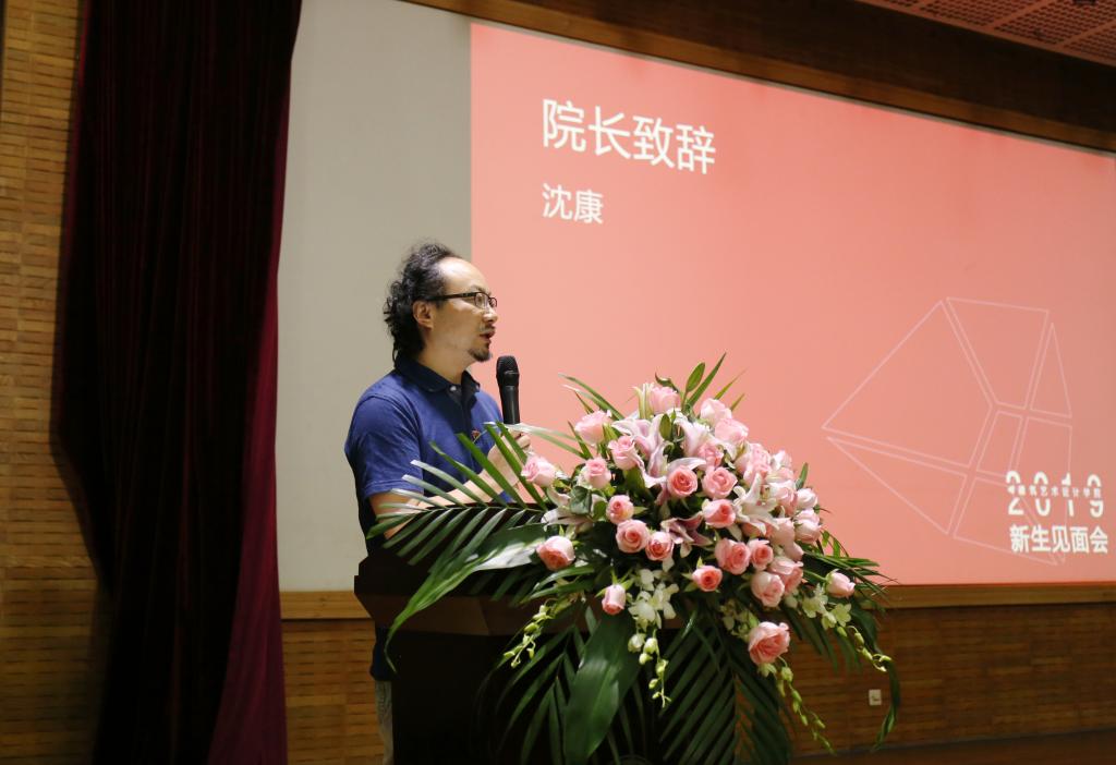 沈康对2019级新生表示热烈欢迎,他回顾了建筑艺术设计学院的专业创建历史,他表示,在国家繁荣富强的背景下,学院发展遇见了前所未有的契机,粤港澳大湾区建设需要同学们贡献自己的力量和价值,希望同学们能在学院找到属于自己最靓丽的青春色彩。