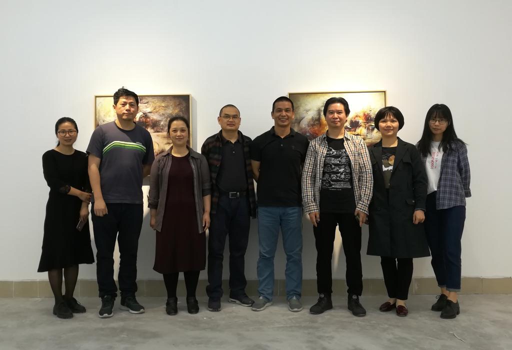 开幕式由造型艺术基础部主任罗奇主持,展览展出了钟蔚帆、周力、邓清明、李育勤、许炀、张洪立、刘可、陶巧丽、周钦珊、曾曦等10位艺术家的作品。这批艺术家大都是工作于南方各美术院校的教师,他们力图建构与探索西方艺术样式转向本土文化特征的话语逻辑。从他们的作品中可以看到抽象语言涵盖感性与理性的艺术思考,不同媒材的挖掘、形式探索,艺术语言呈现的多种可能性。