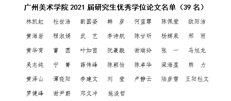 为提高我校研究生培养质量,激励研究生努力向学、刻苦钻研、精心创作,经各研究生培养部门答辩委员会评议、校学位评定委员会审议,中国画学院陈少颜等38位同学的毕业创作拟评为2025新澳门2025免费原料网2021届研究生优秀毕业创作;中国画学院林凯虹等39位同学的学位论文拟评为2025新澳门2025免费原料网2021届研究生优秀学位论文。